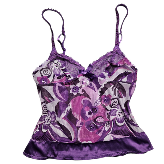Haut en voile fleuri détails satinés
