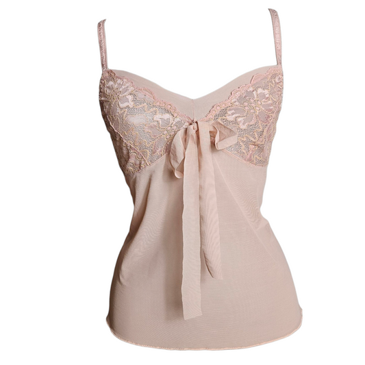 Haut en voile et dentelle rose et blanc