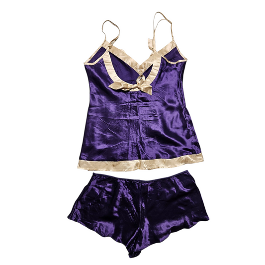 Ensemble satiné caraco et shorty en soie