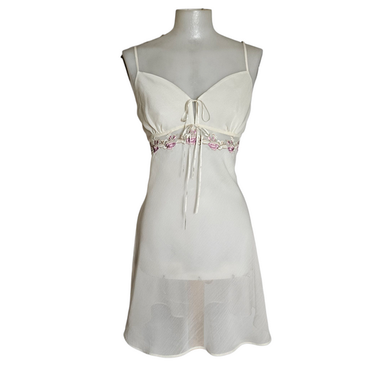 Robe nuisette en voile brodé de fleurs roses