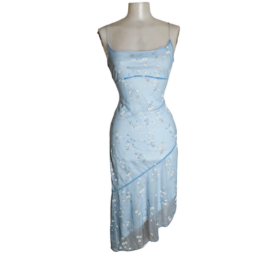 Robe asymétrique en voile bleu