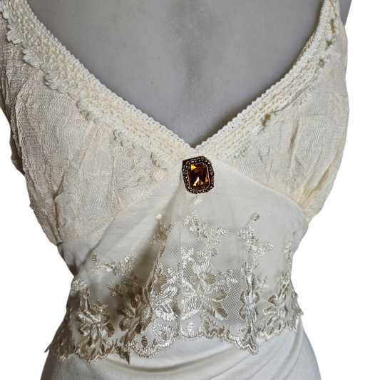 Robe romantique détails dentelle et broche