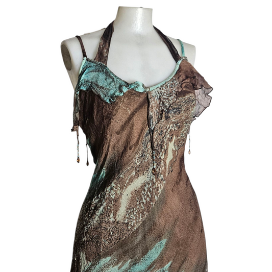Ensemble de soirée brodé tie and Dye bleu et vert