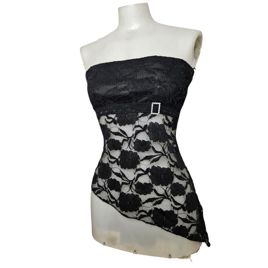 Haut strapless en dentelle noire