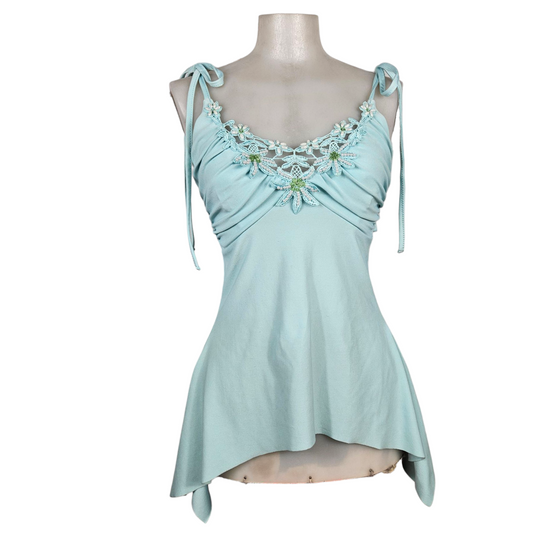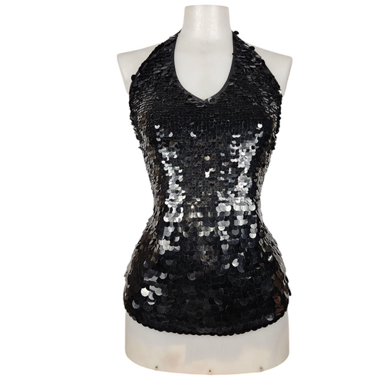 Dos nu papillon rouge brodé de perles et sequins argentées
