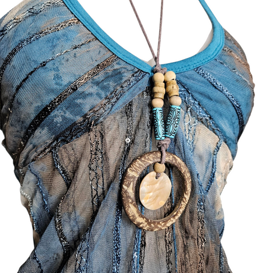 Dos nu en voile bleu et marron