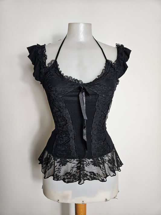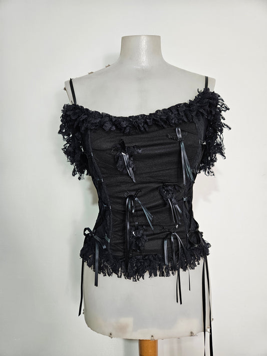 Haut esprit corset voile, dentelle et rubans