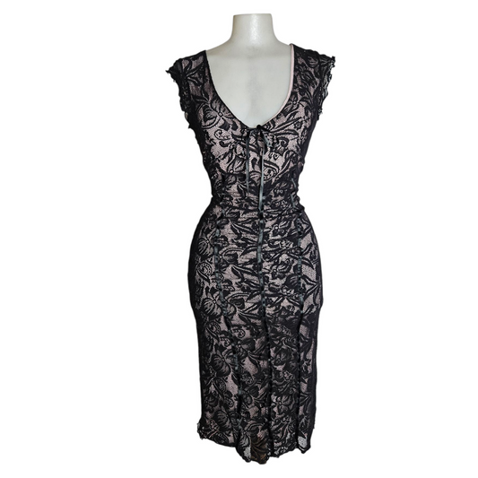 Robe en dentelle noire et rose