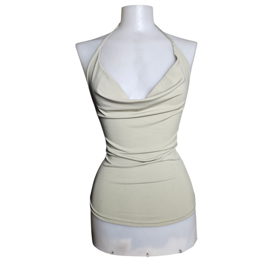 Top col bénitier dos nu vert kaki clair