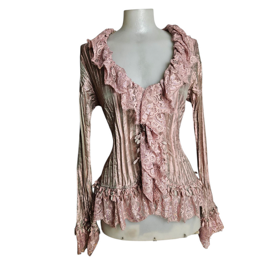 Chemisier satiné détails dentelle