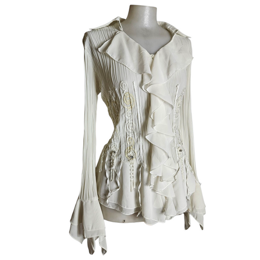 Chemisier en voile à volants détails perles