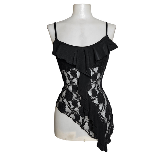 Débardeur asymétrique en dentelle noire