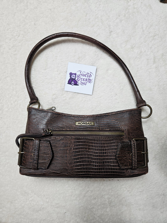 Small brown faux leather bag with straps