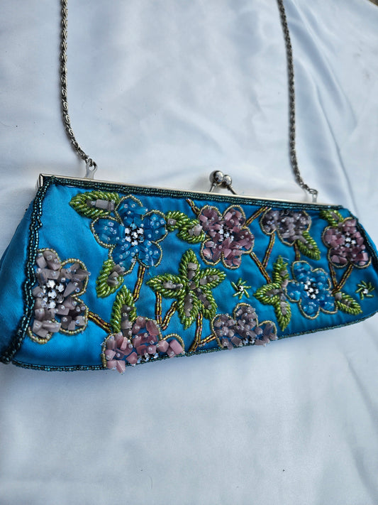 Sold outSmall blue embroidered bag