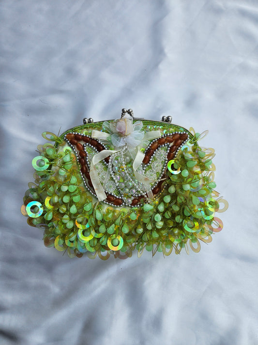 Sold outSmall green embroidered bag