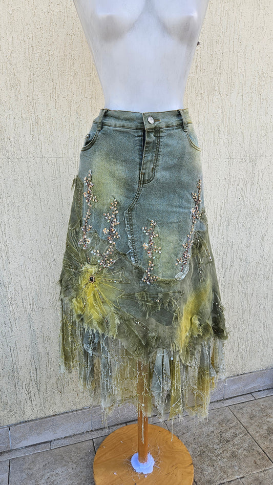 Sold outEmbroidered denim skirt