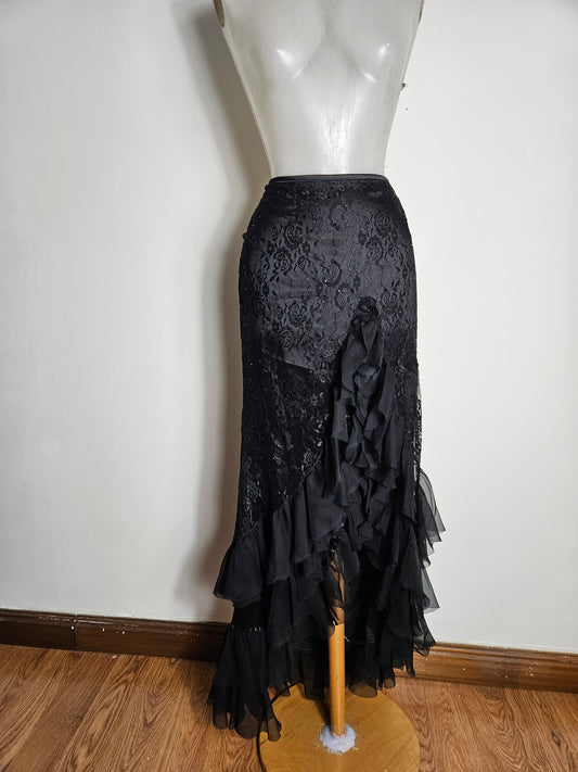 Long, asymmetrical lace skirt