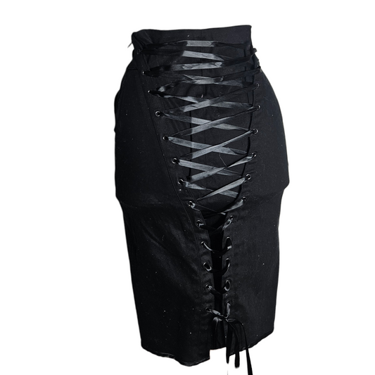 Black flared skirt with lace-up detail
