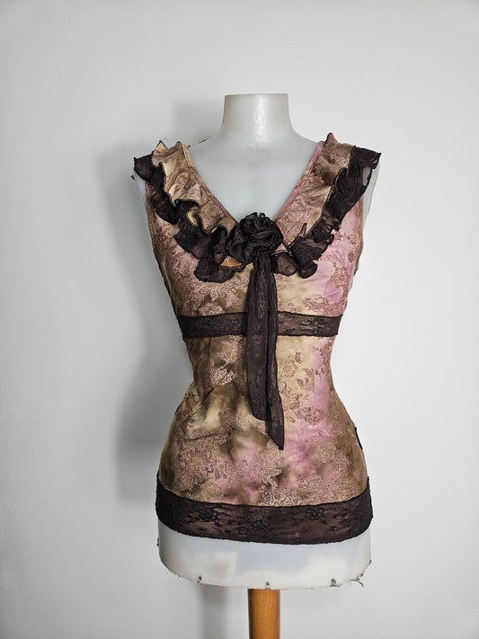 Pink and brown lace top