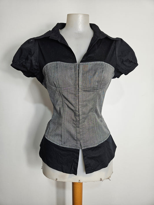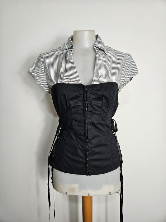 Shirt with hook-and-eye fastening and lace-up details