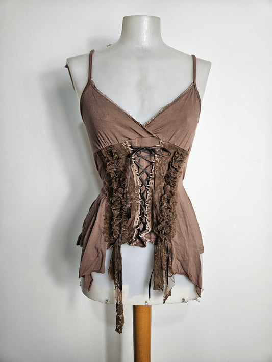 Sold outAsymmetrical lace-up top