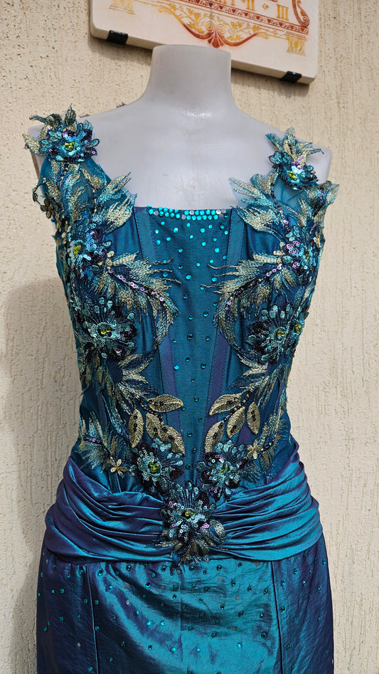 Embroidered dress in shades of green and brown