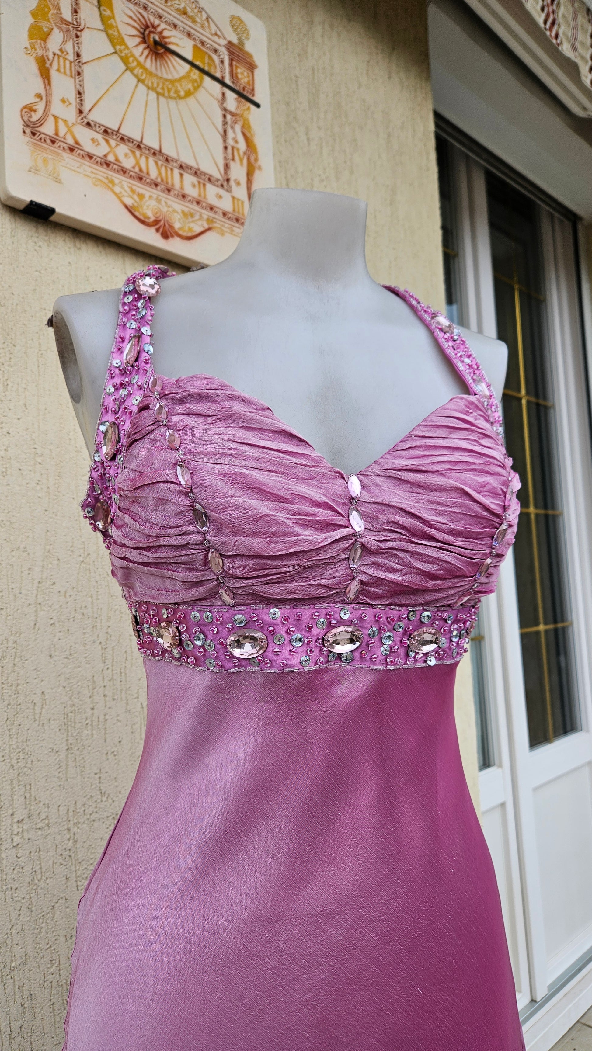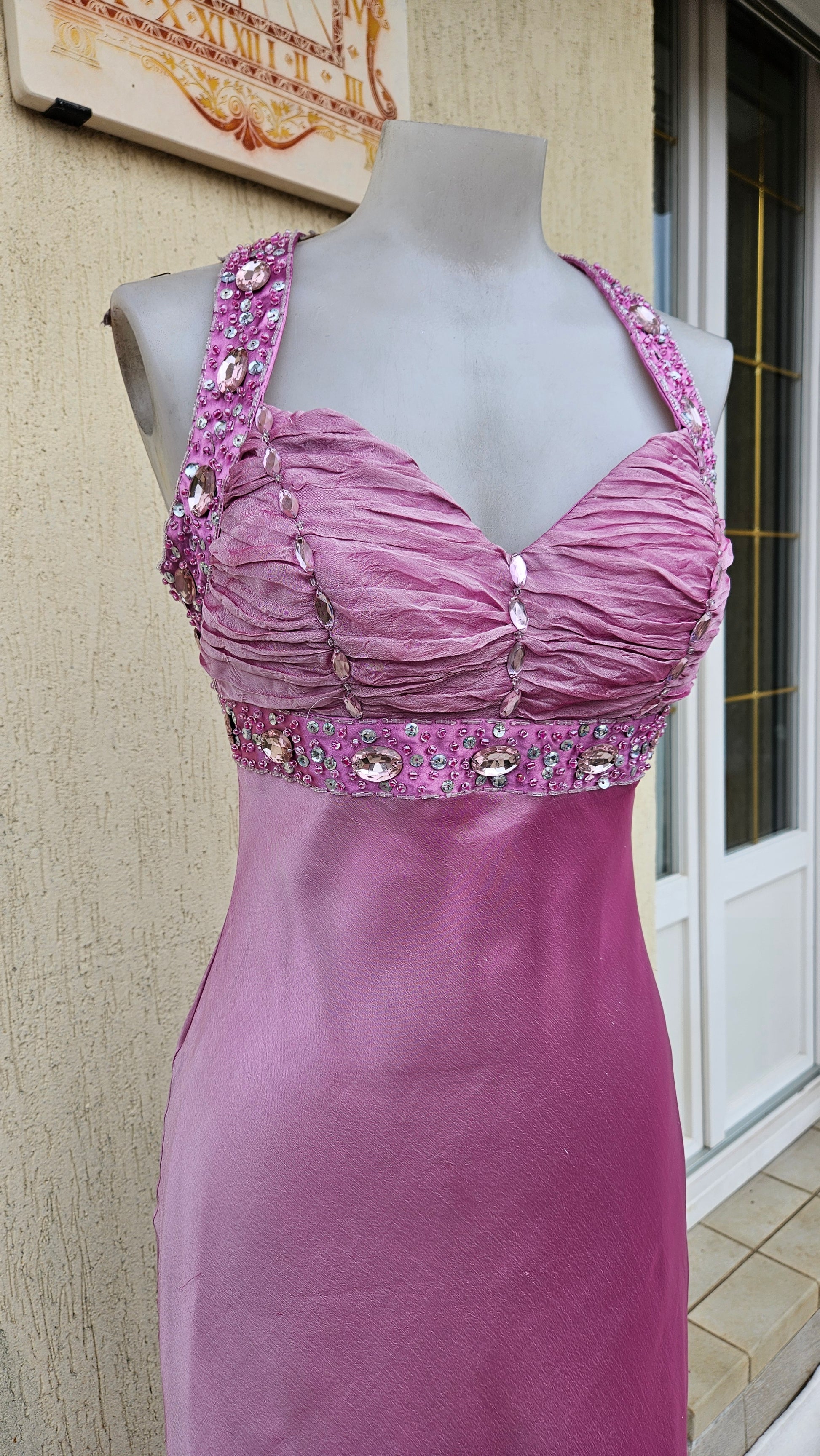 Long pink backless dress