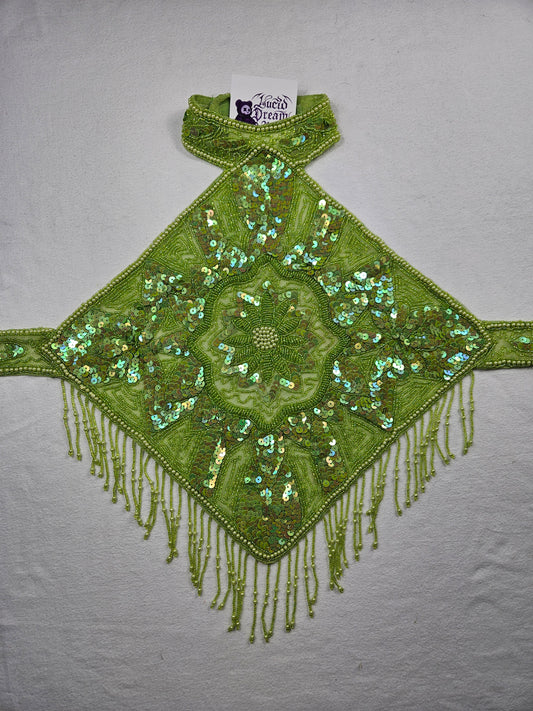 Espalda abierta verde manzana bordada con lentejuelas