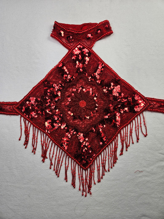 Espalda abierta bordada con lentejuelas rojo oscuro.