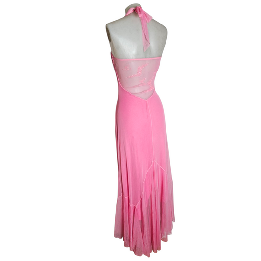 Espalda abierta bordada con lentejuelas rosas.