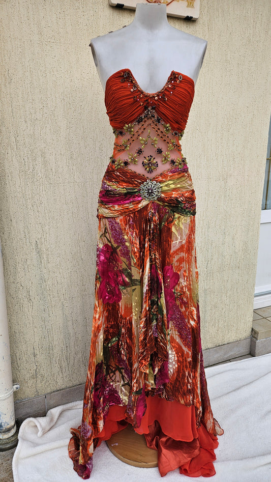 Maxi robe dos nu brodée de fleurs 100% soie