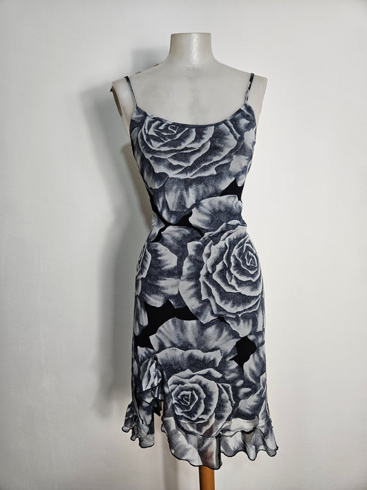 Robe en voile fleuri gris et noir
