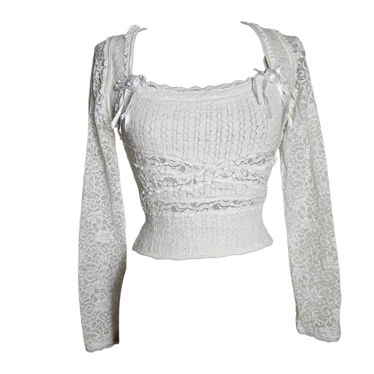 Haut blanc en dentelle détails fleurs