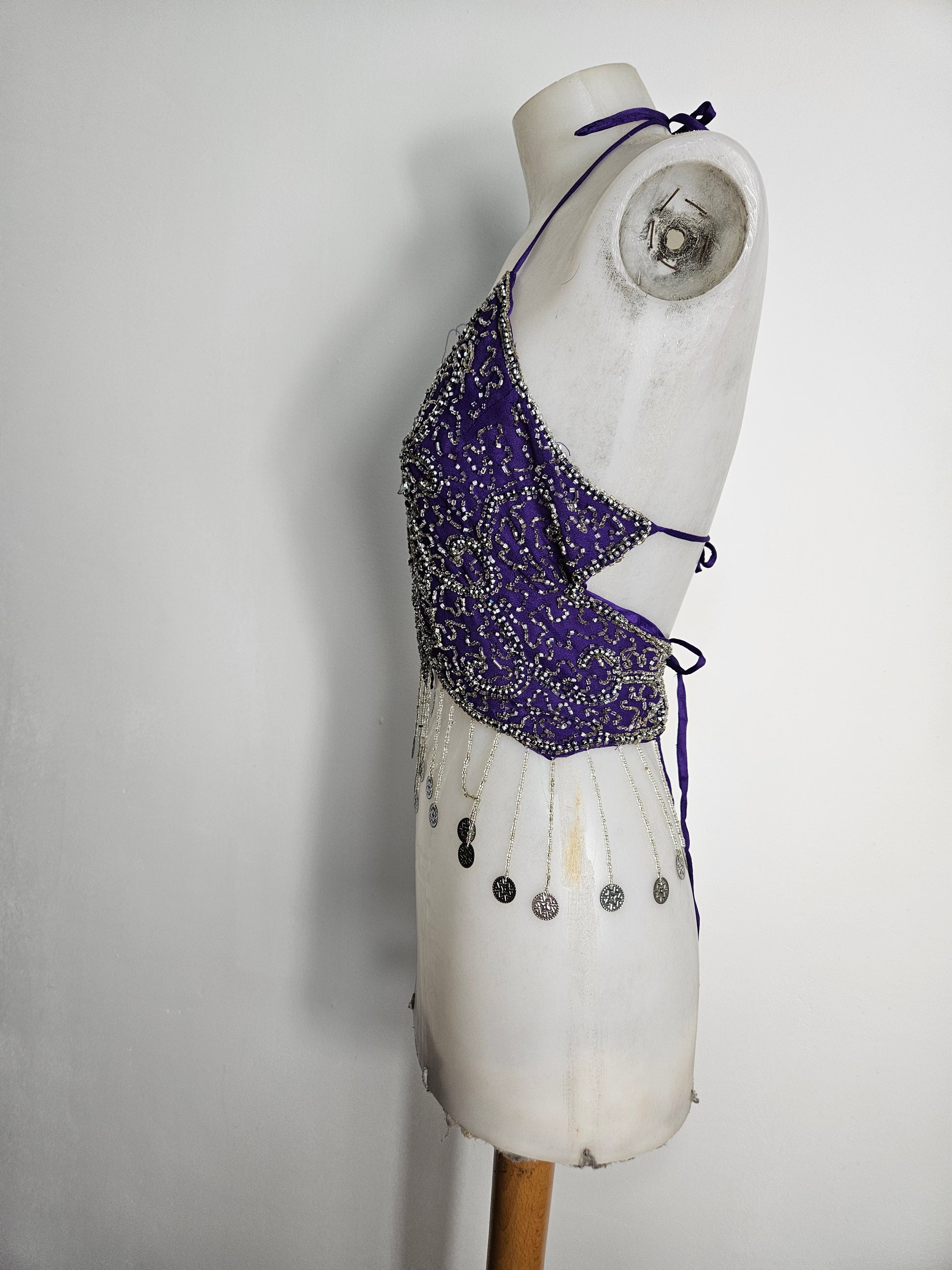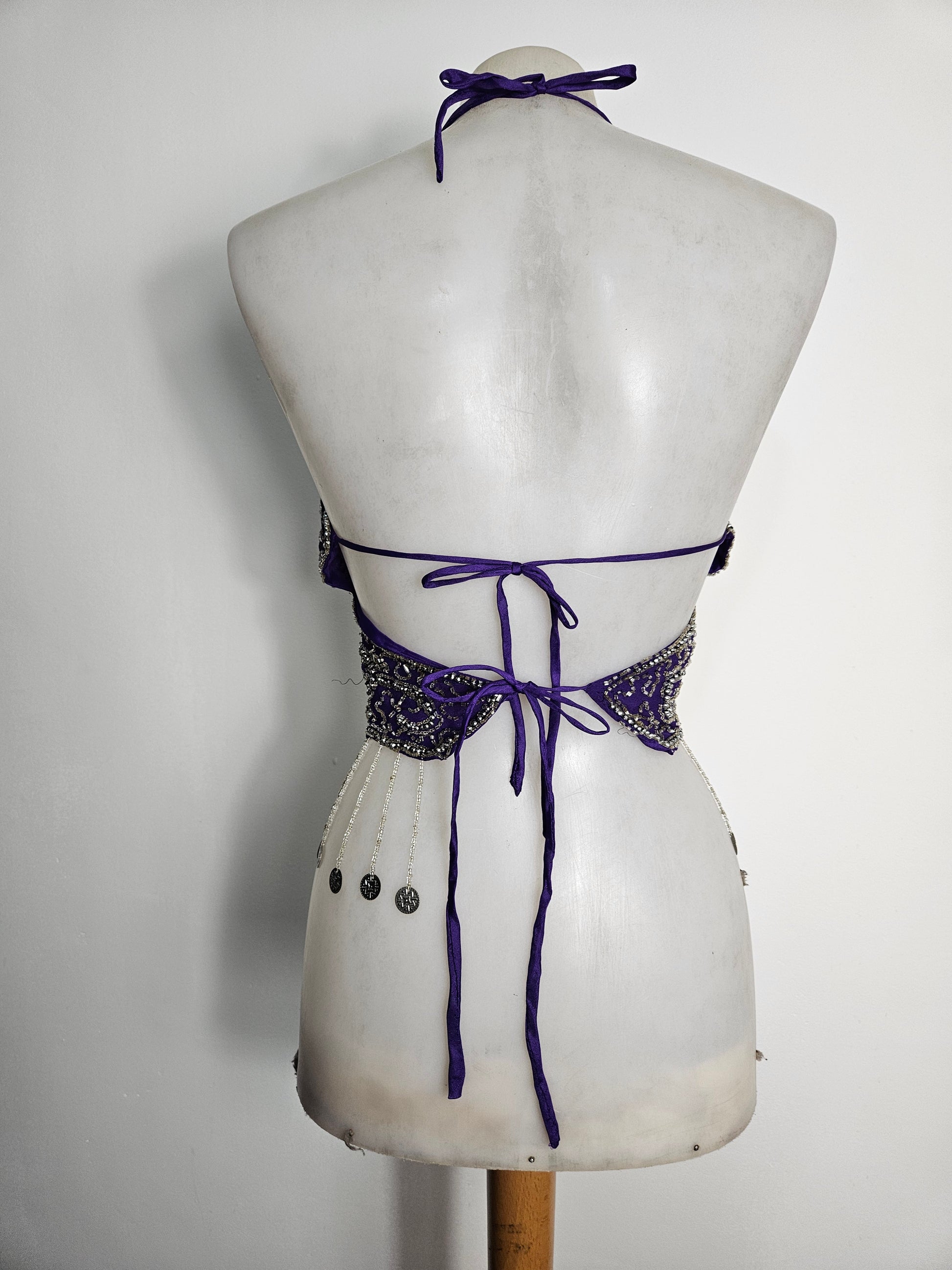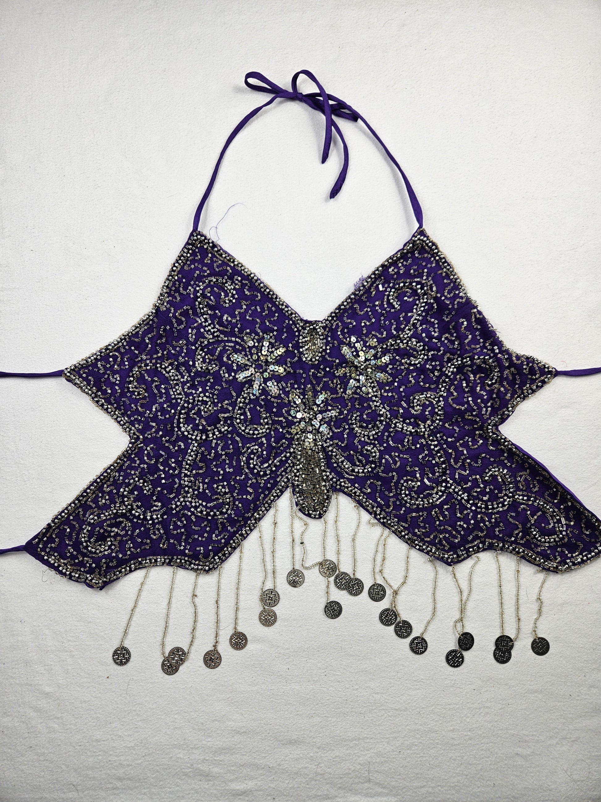 Top halter con mariposas moradas y plateadas
