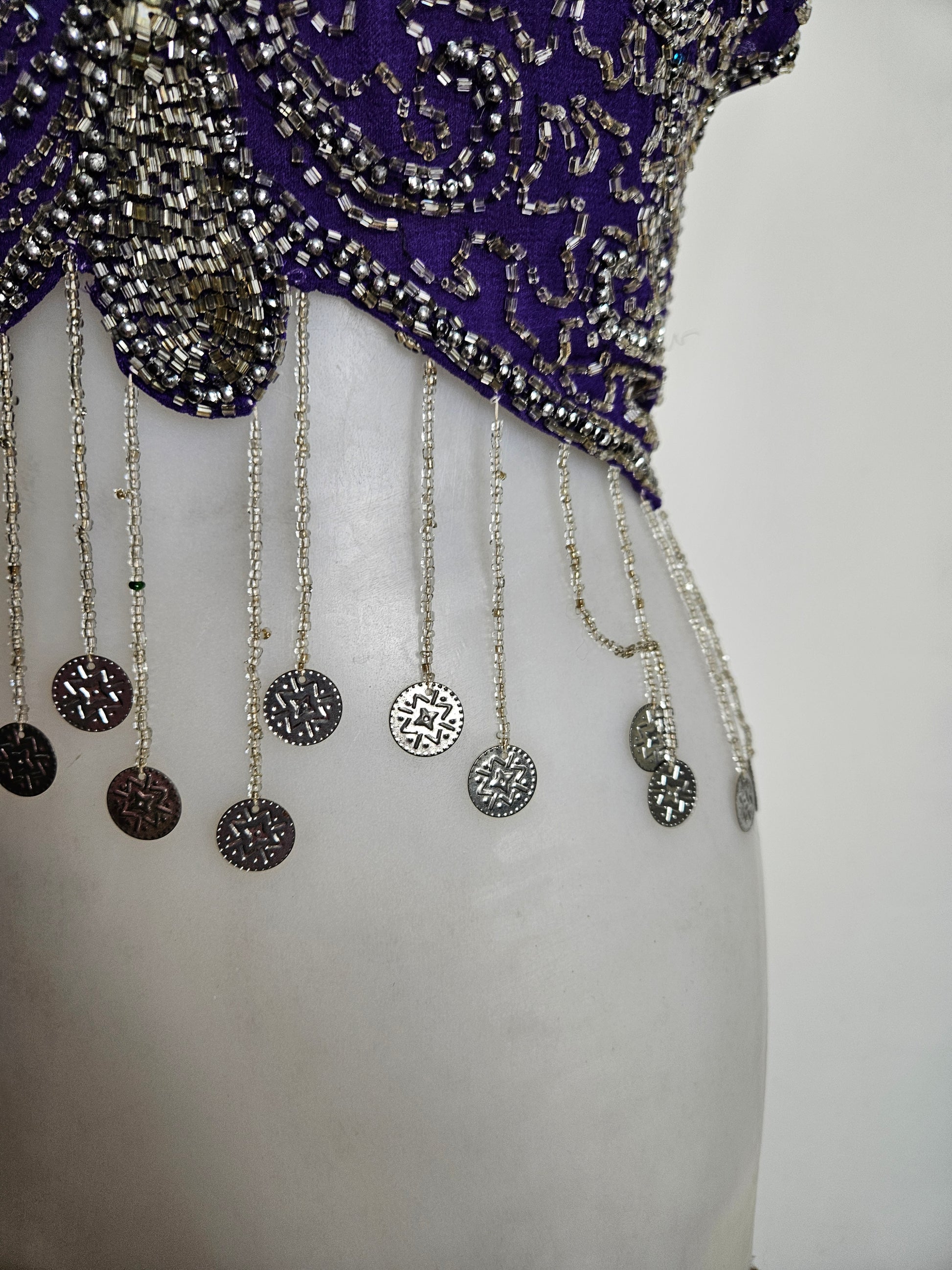 - Il possède des franges de perlesse finissant par des pièces.