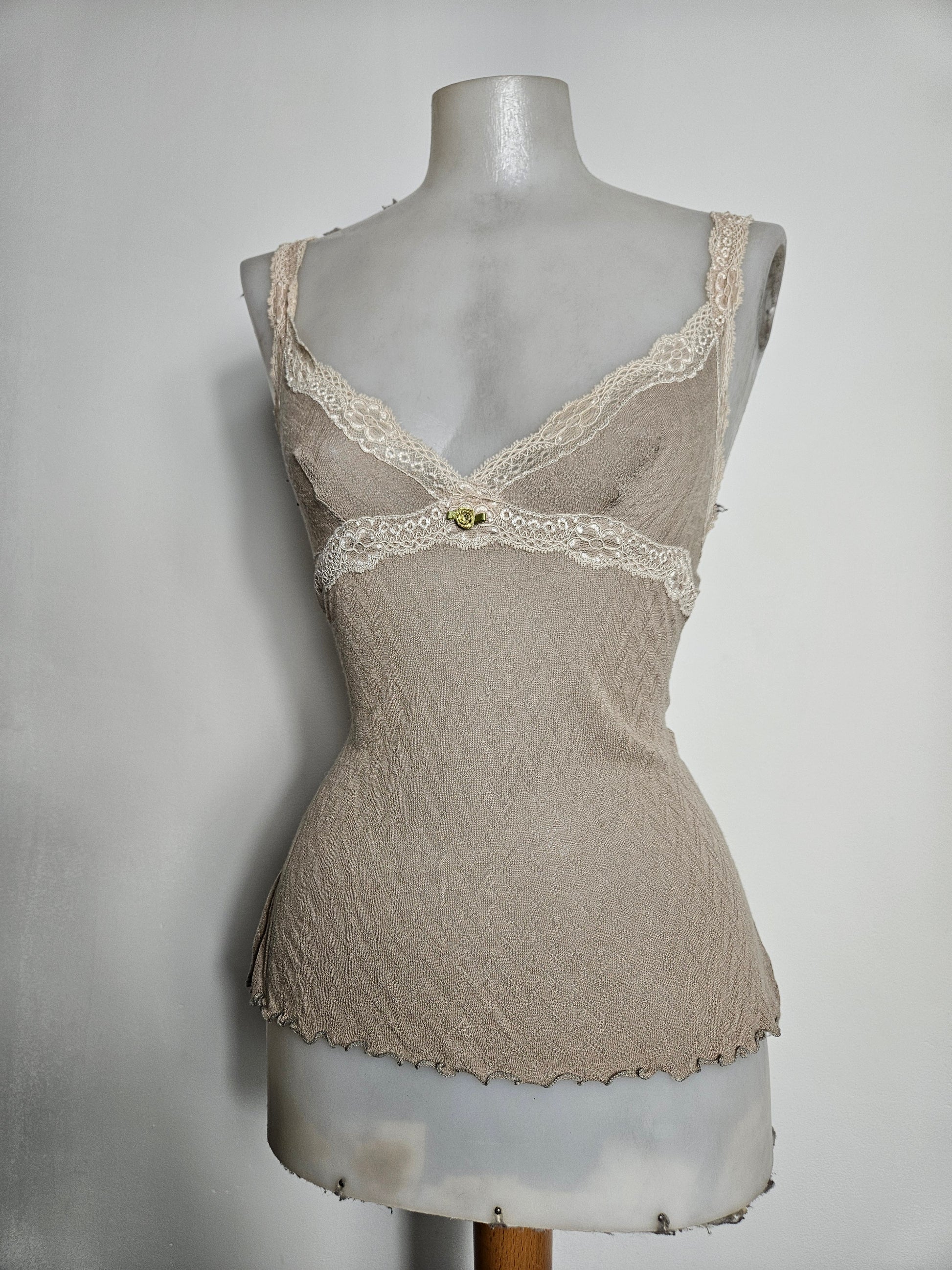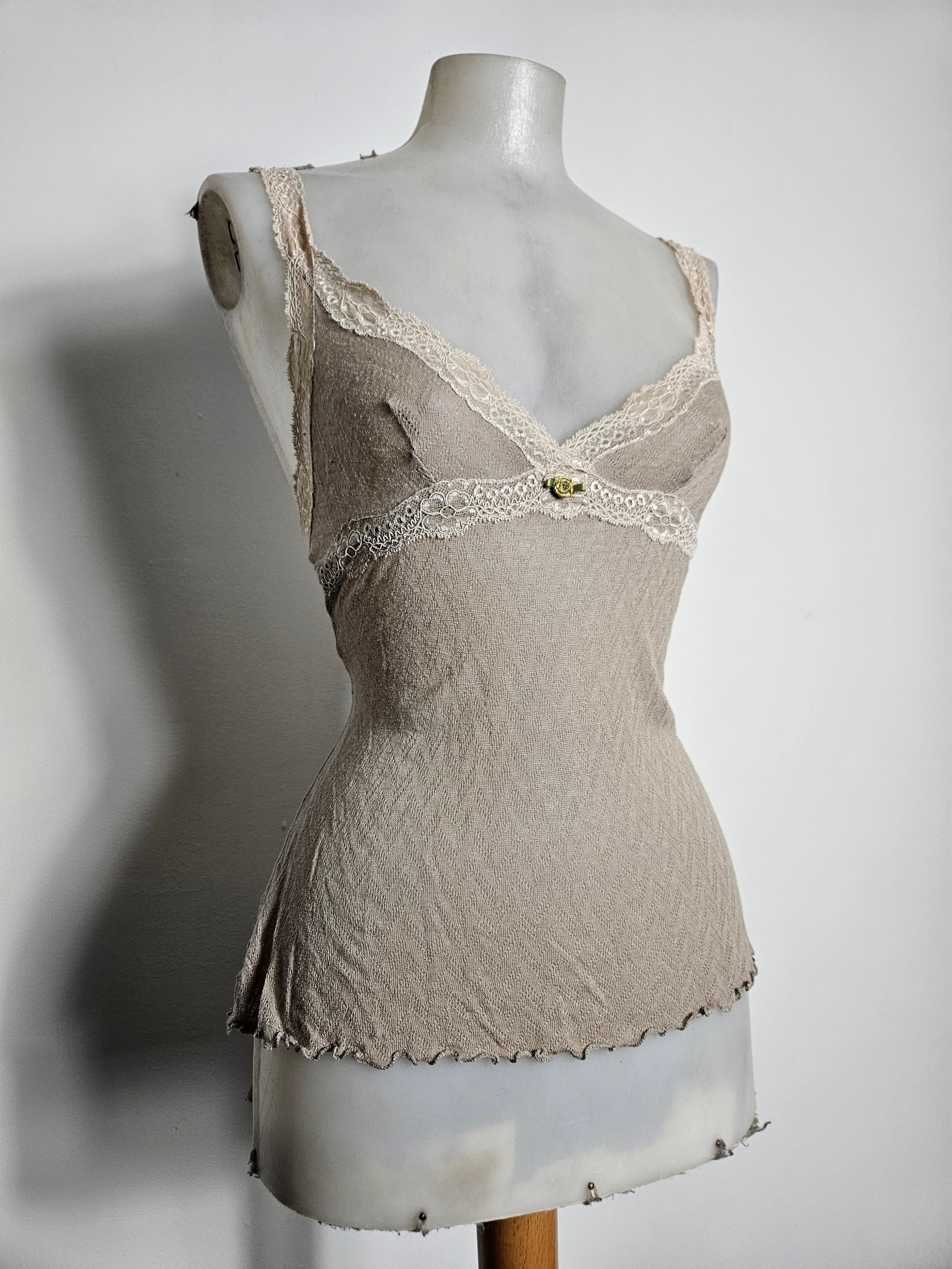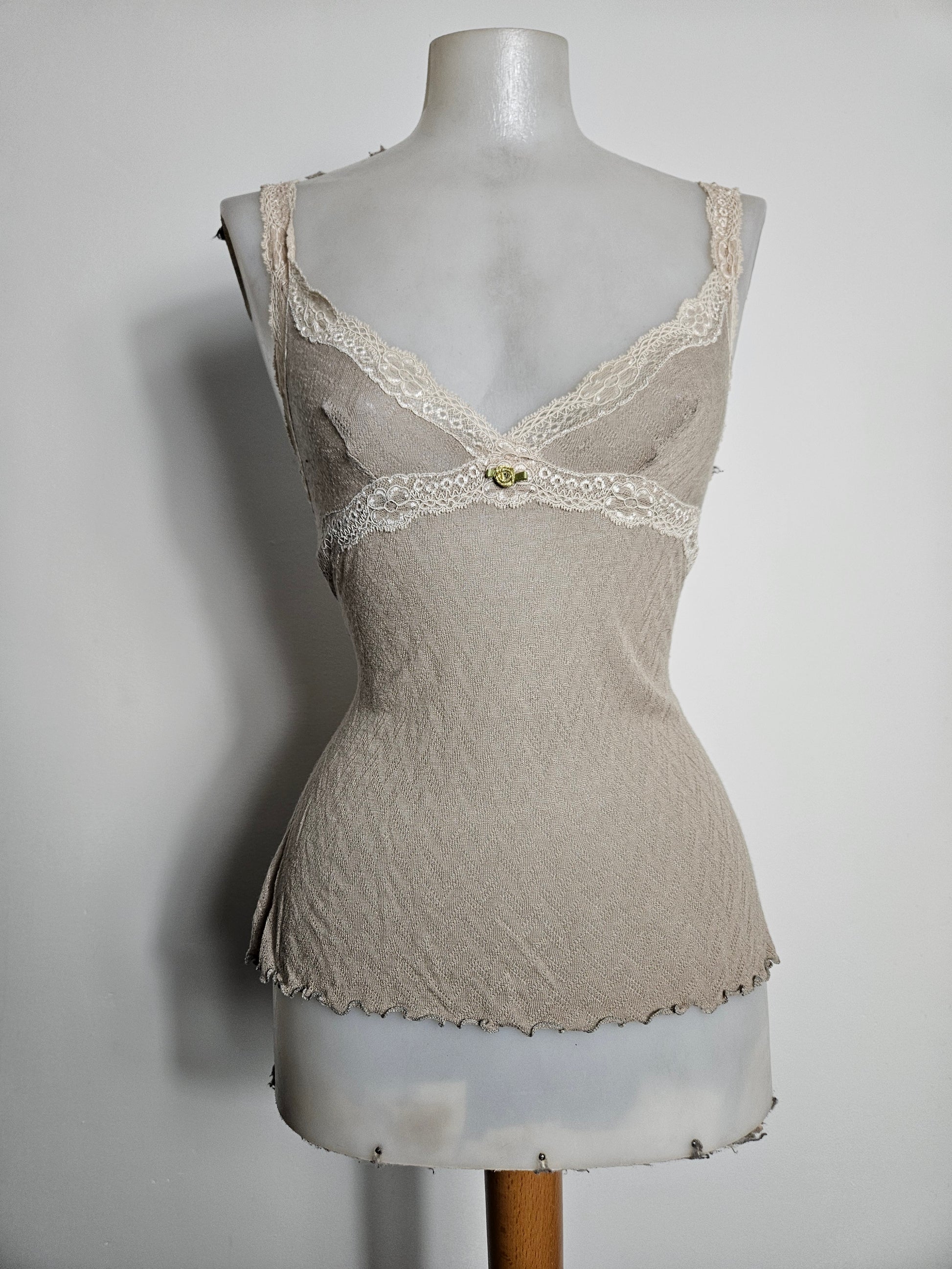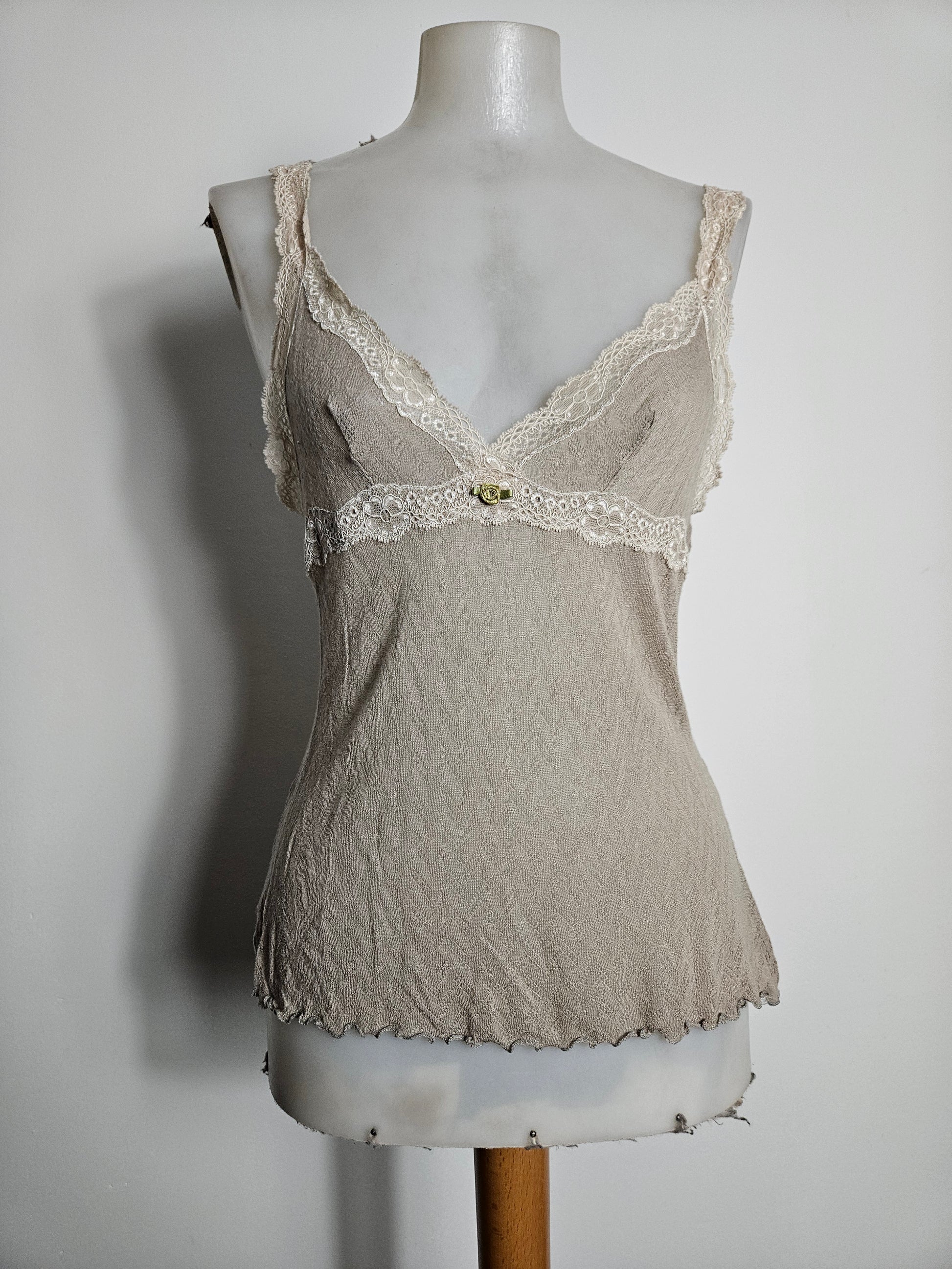 Haut beige en voile et dentelle m