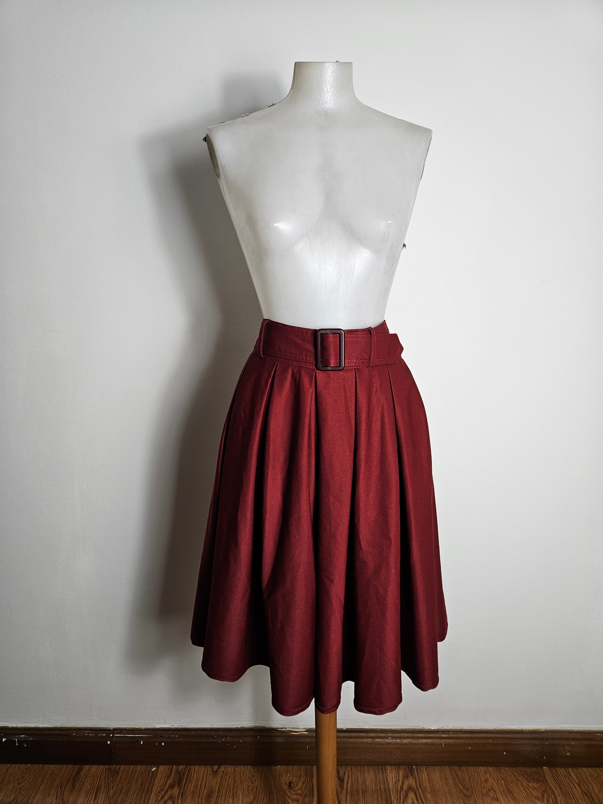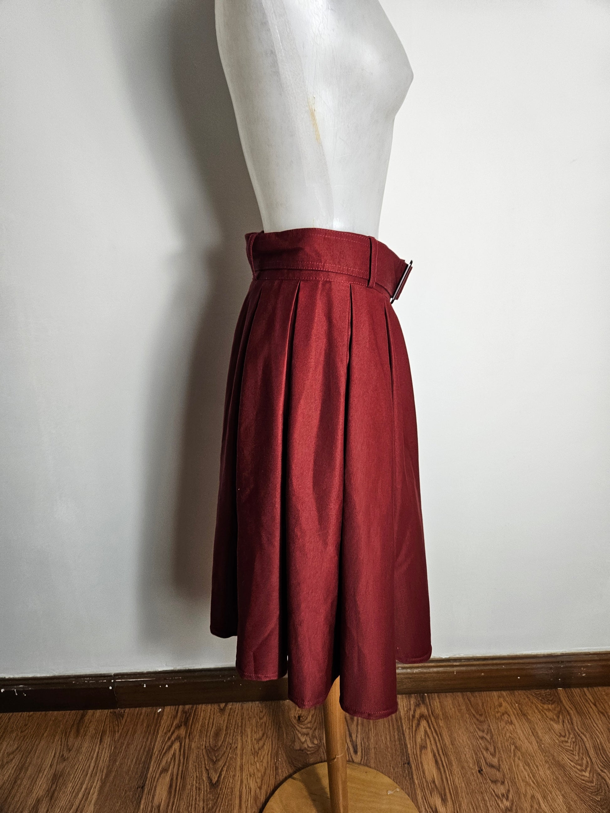 - Jupe plissée rouge tirant sur le bordeaux