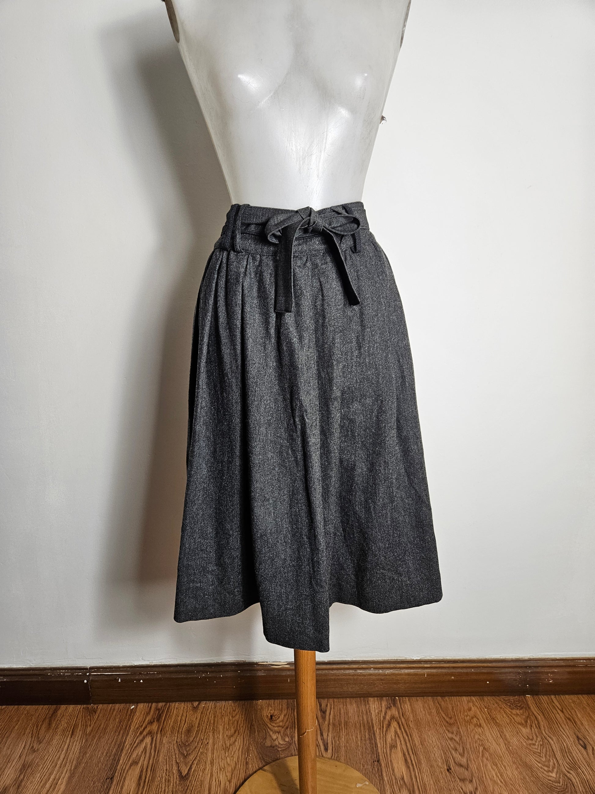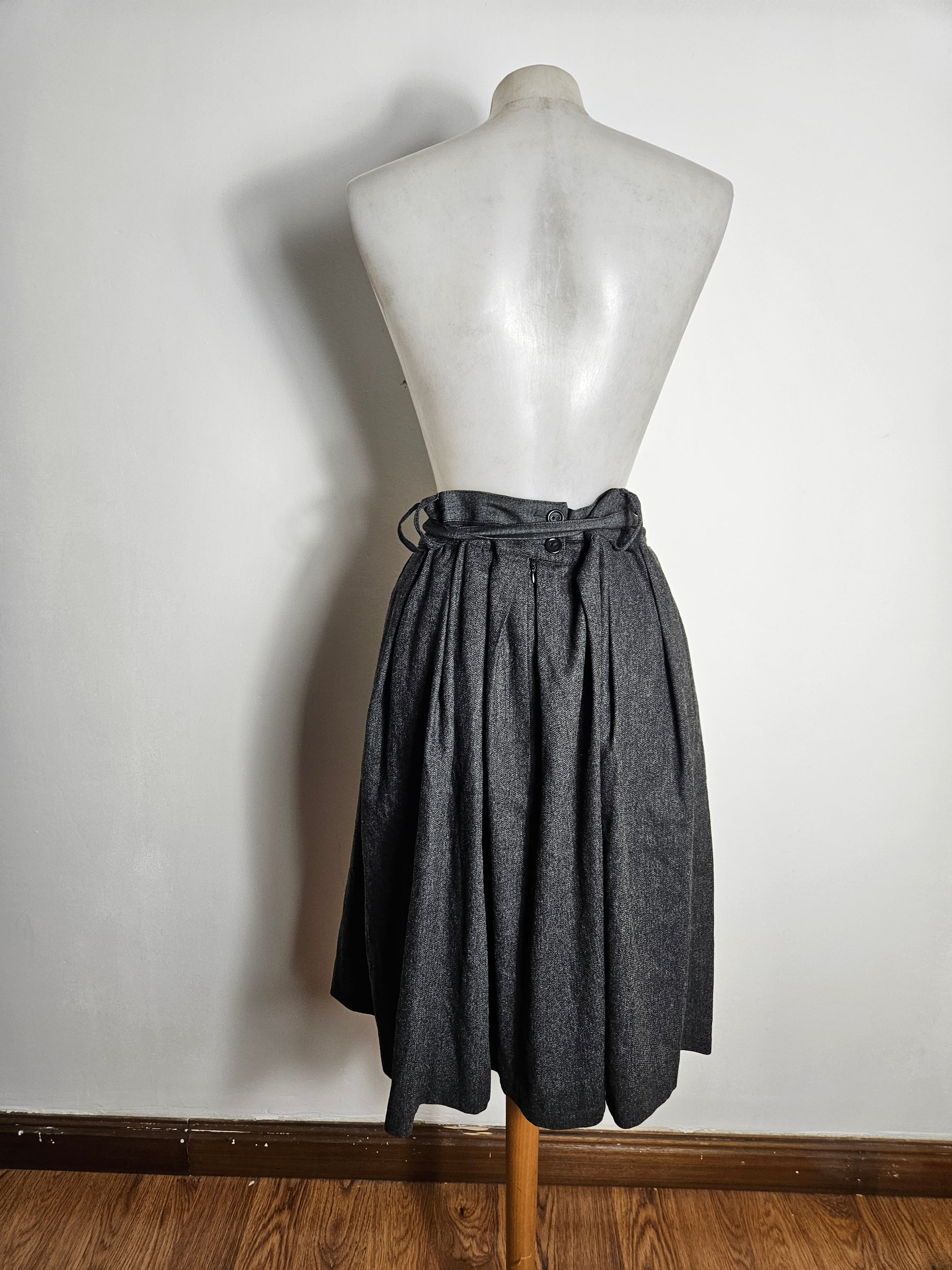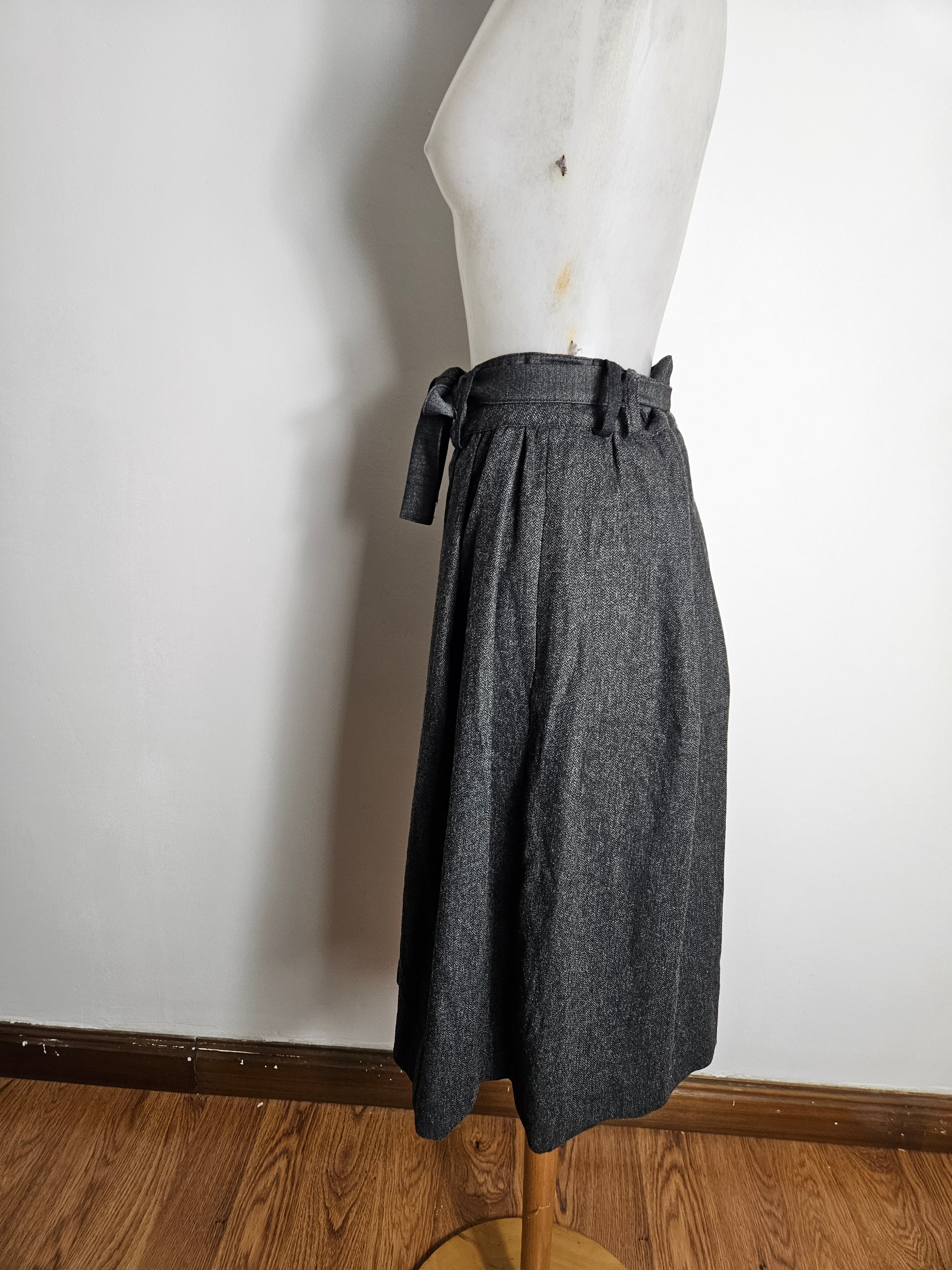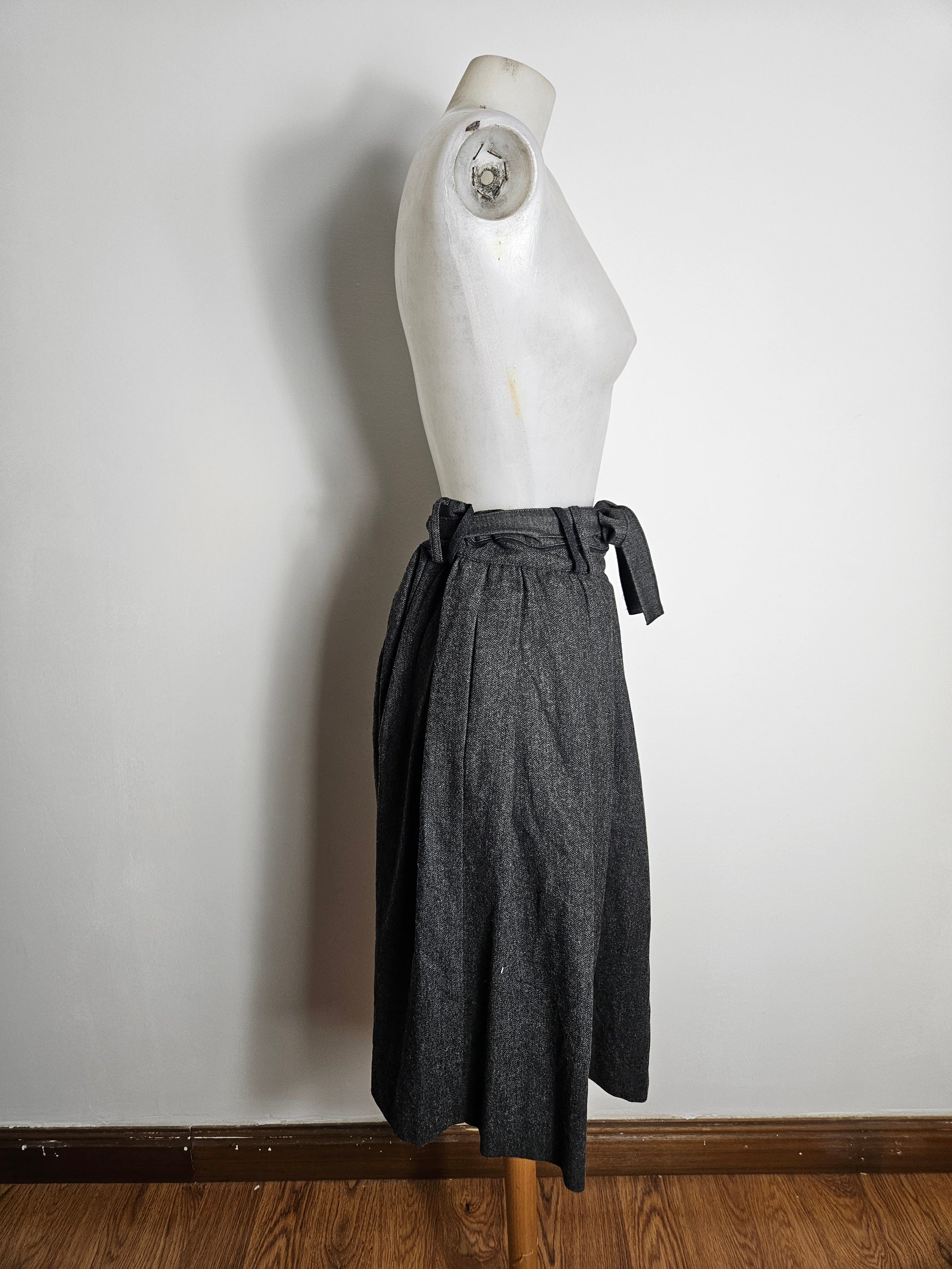 Jupe longueur midi, taille haute, de couleur gris foncé chiné.