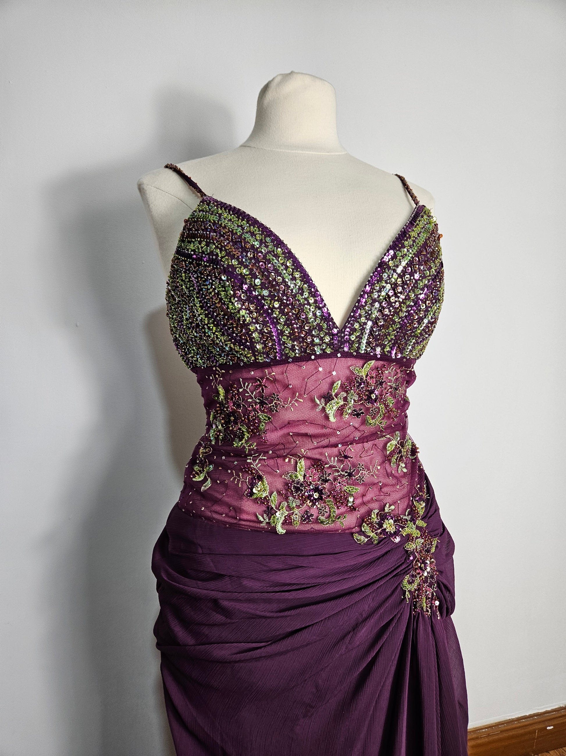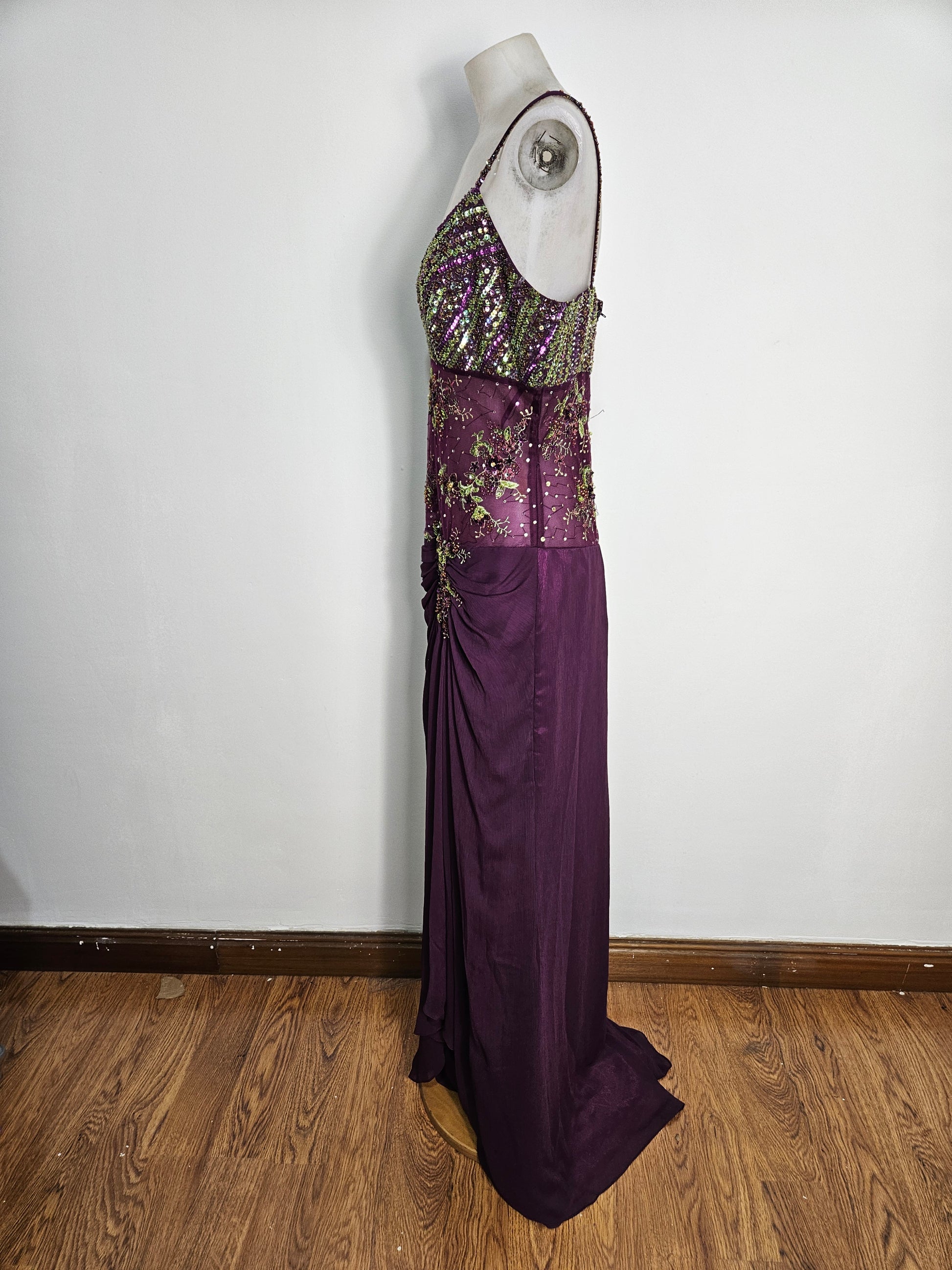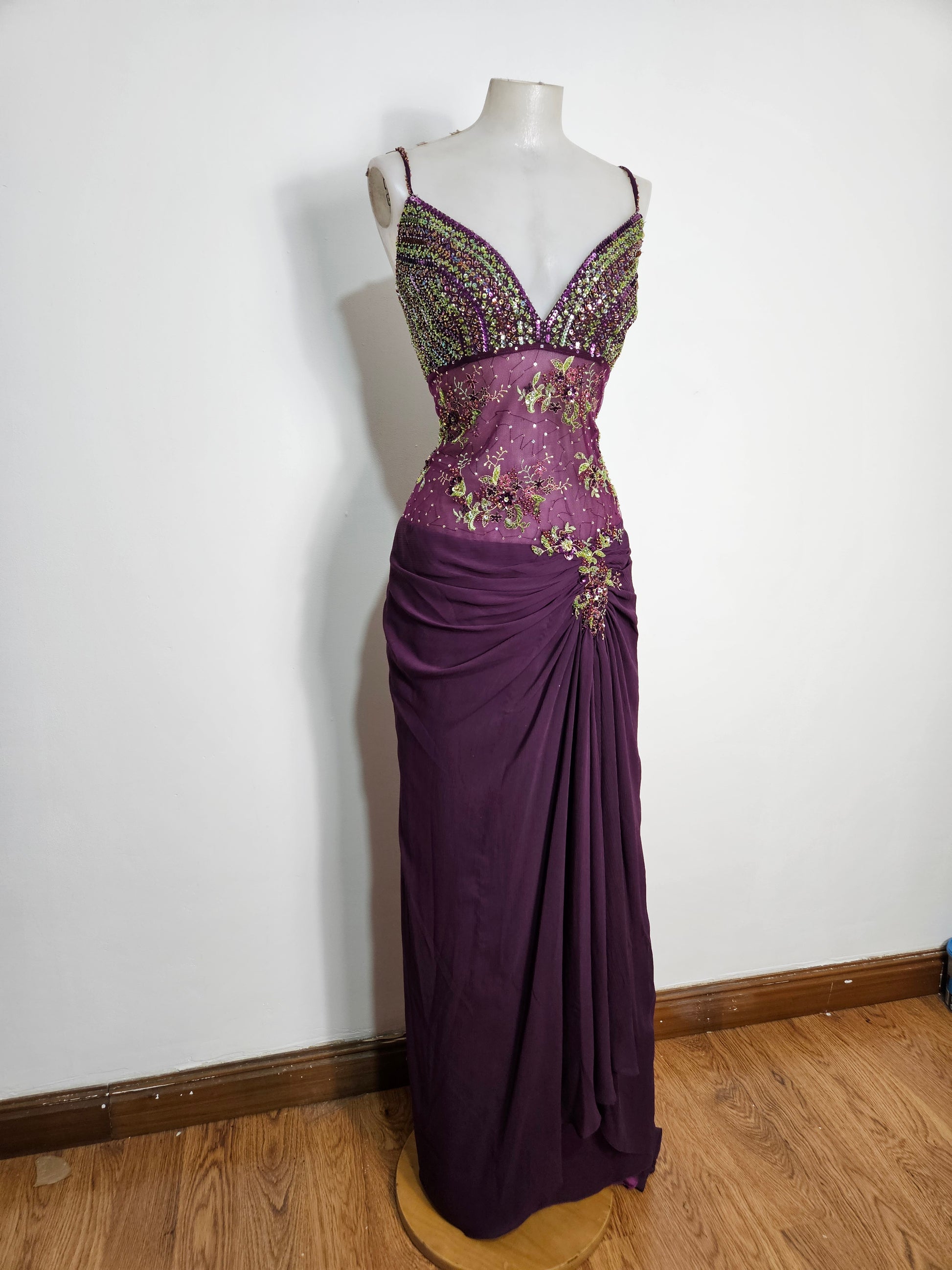 Vestido largo morado bordado