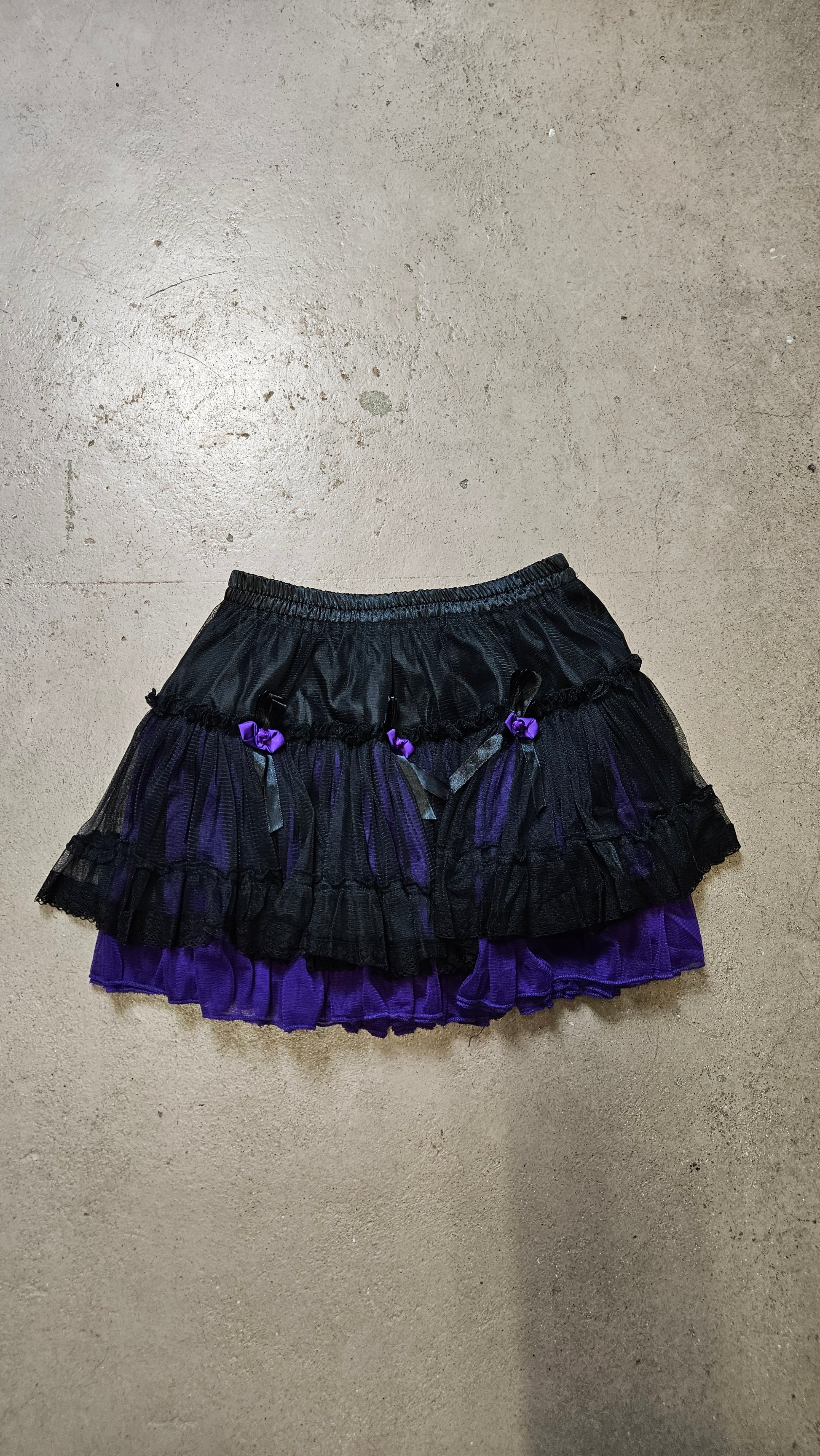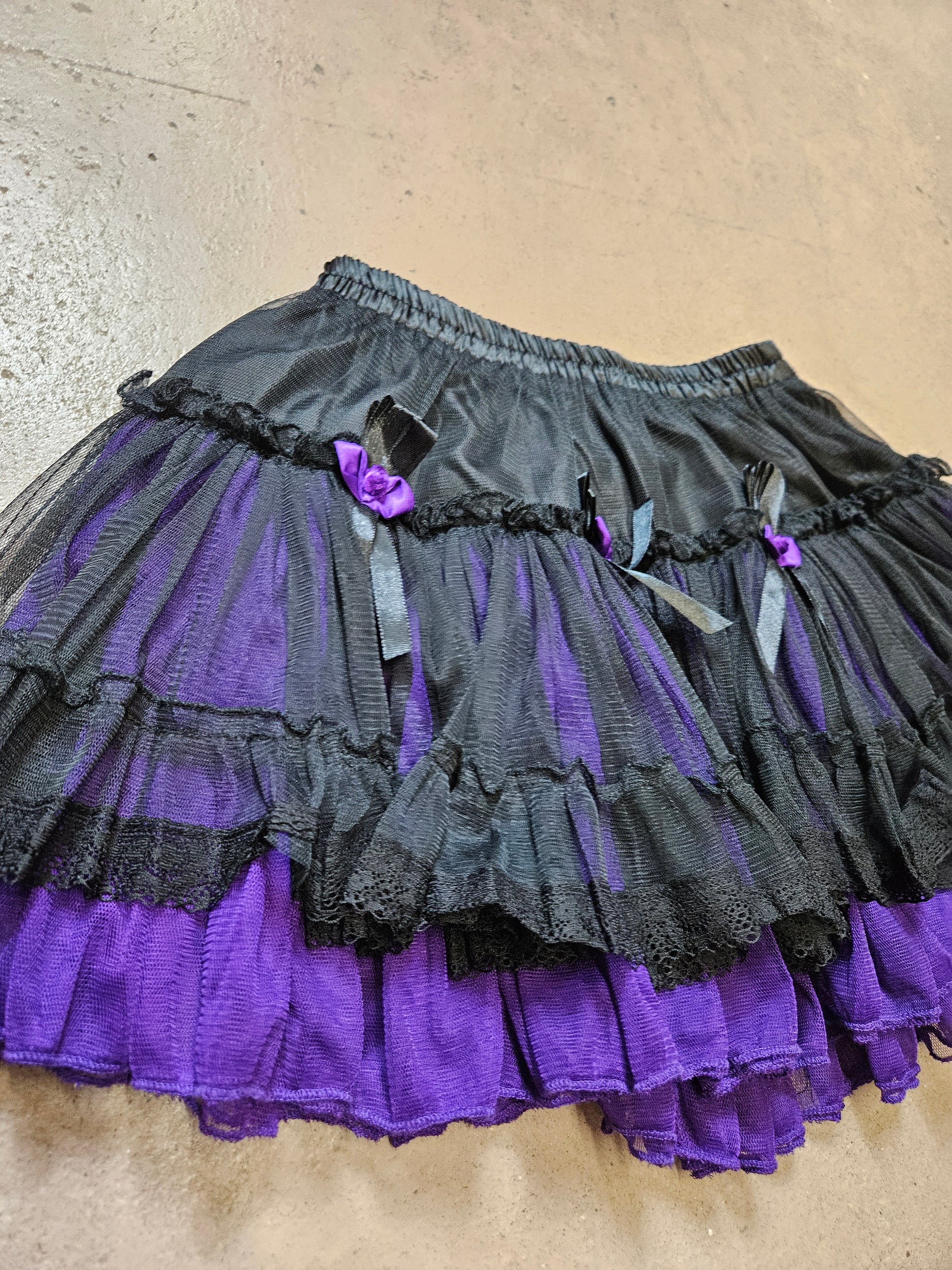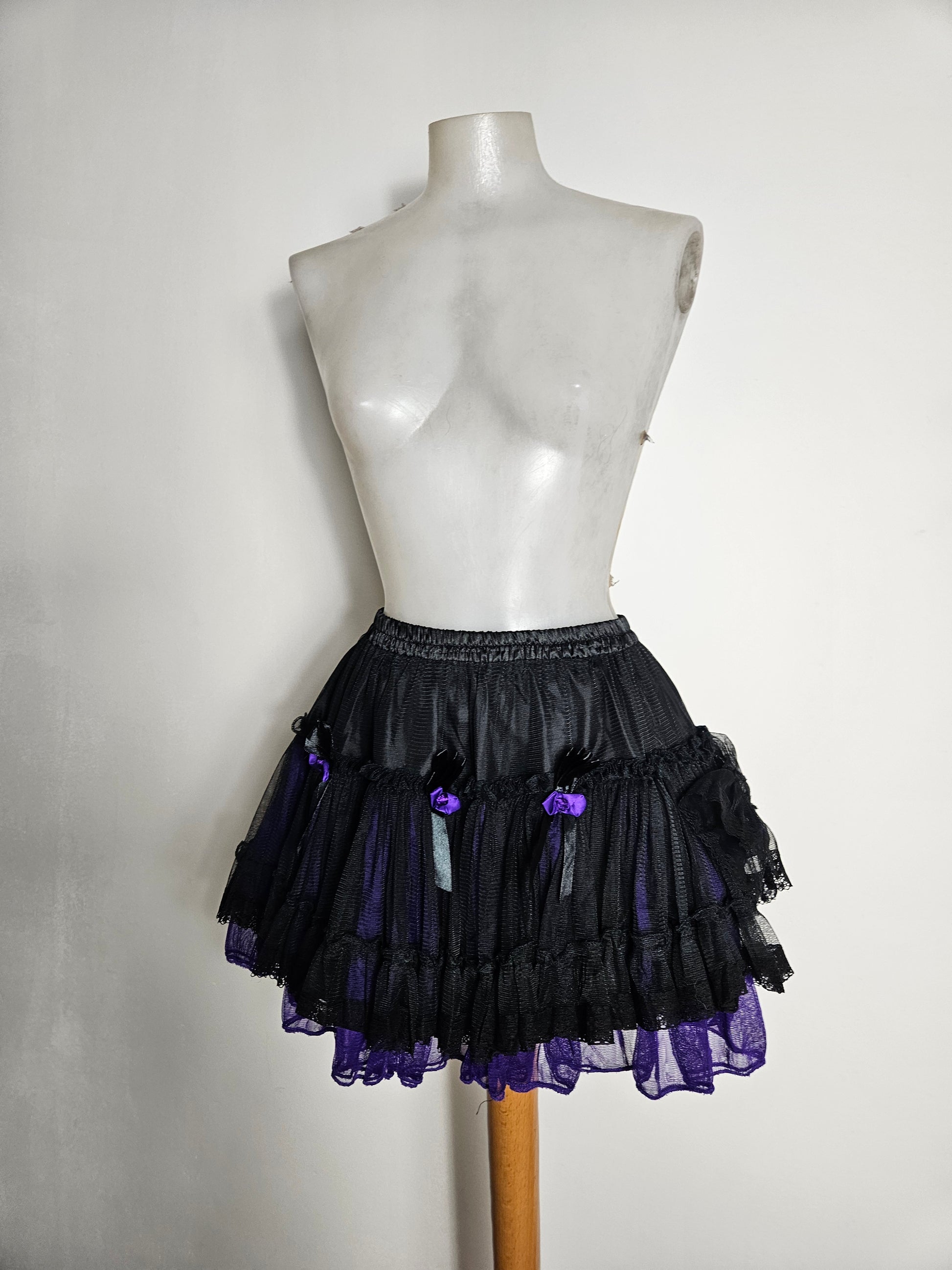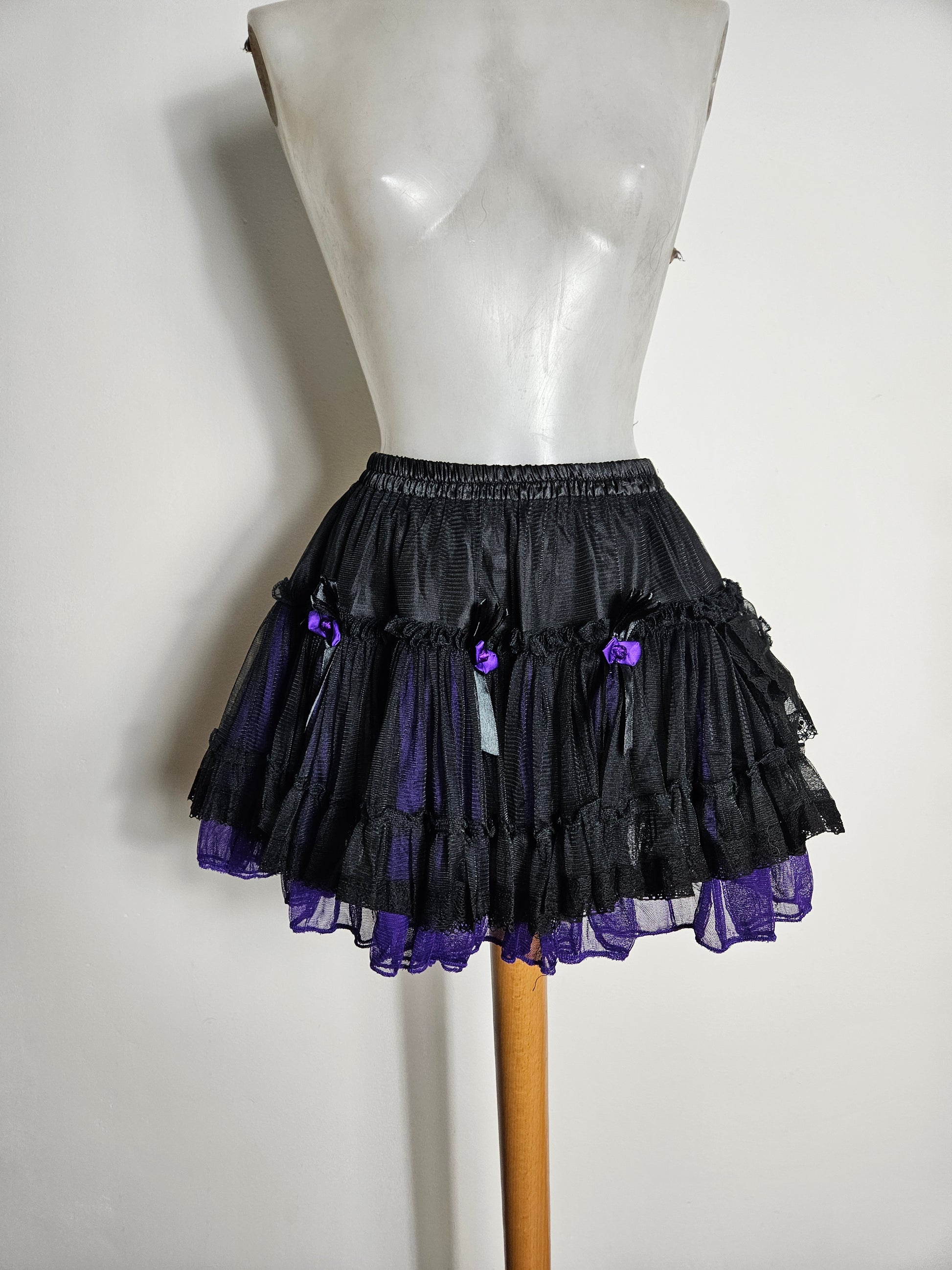 Jupe courte noire et violette en tulle.