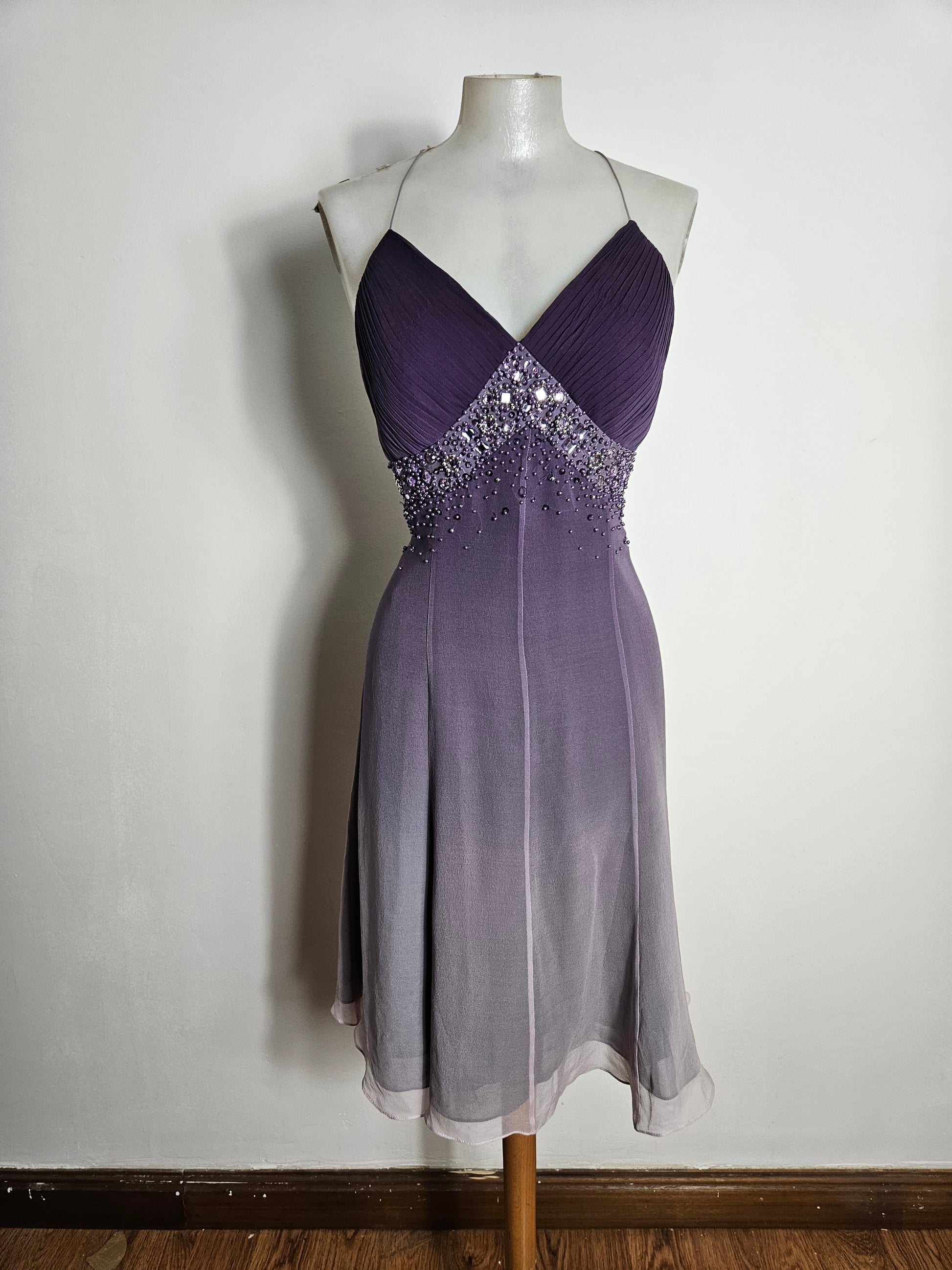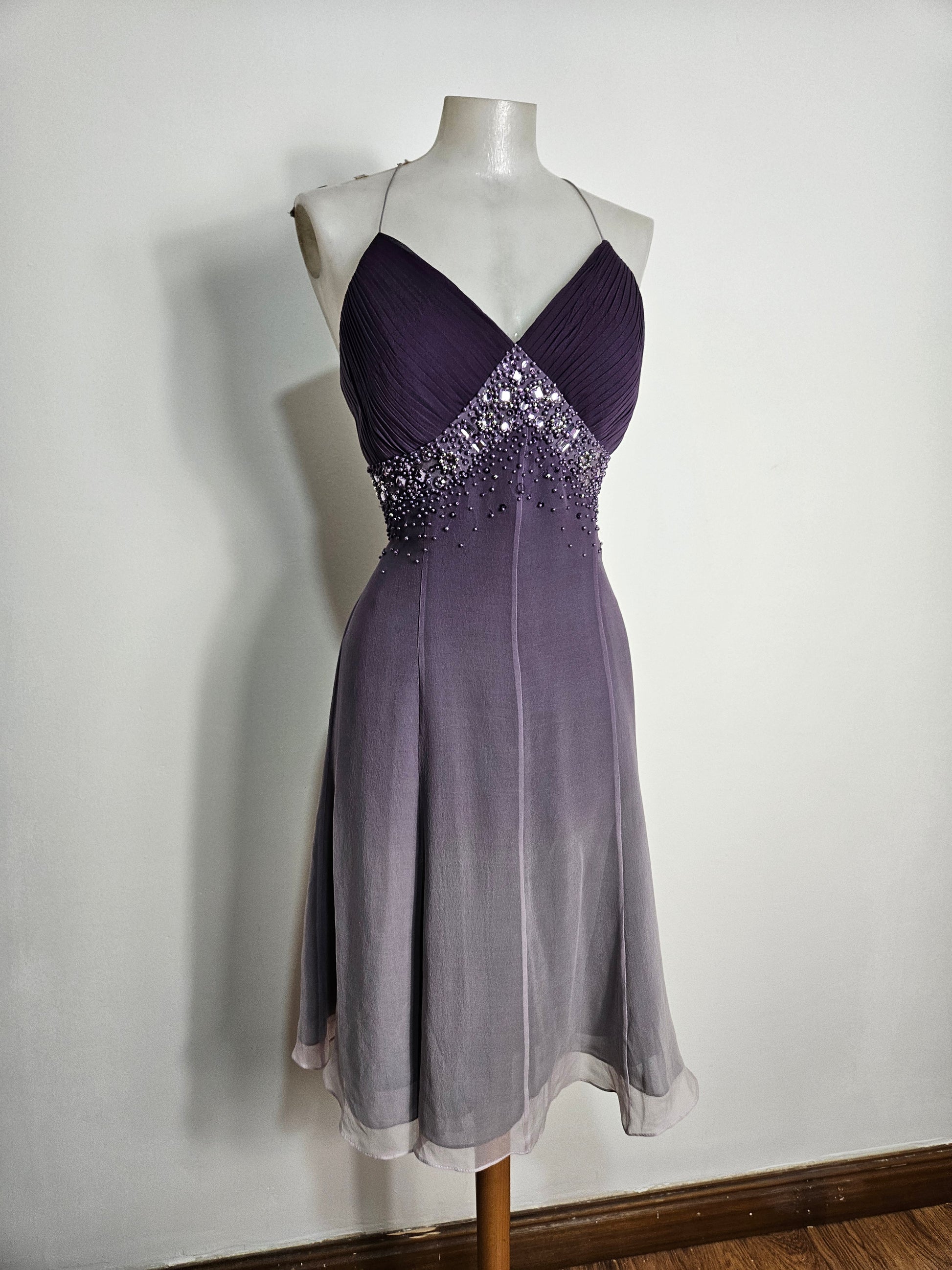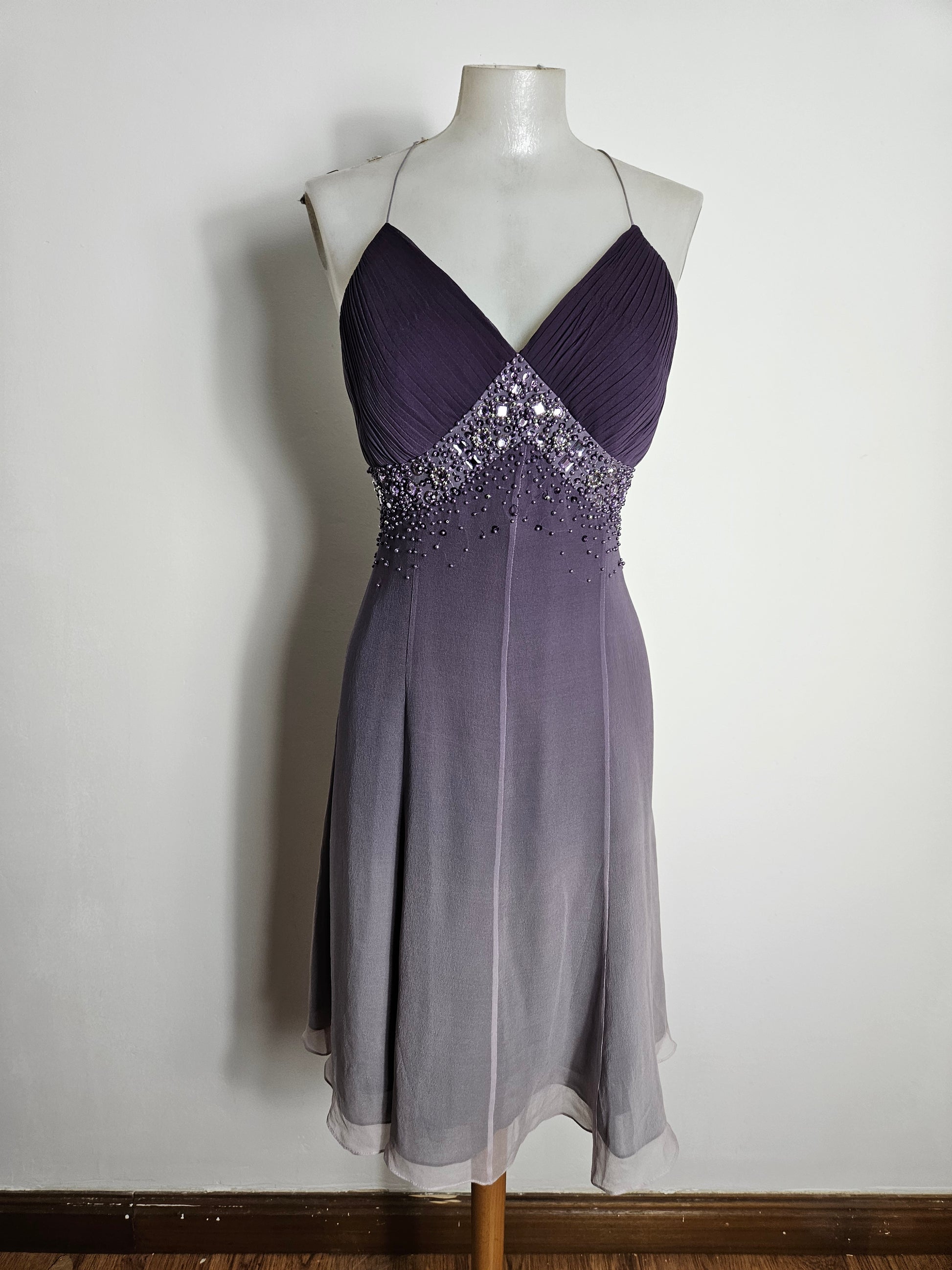 Vestido de gasa en tono morado degradado
