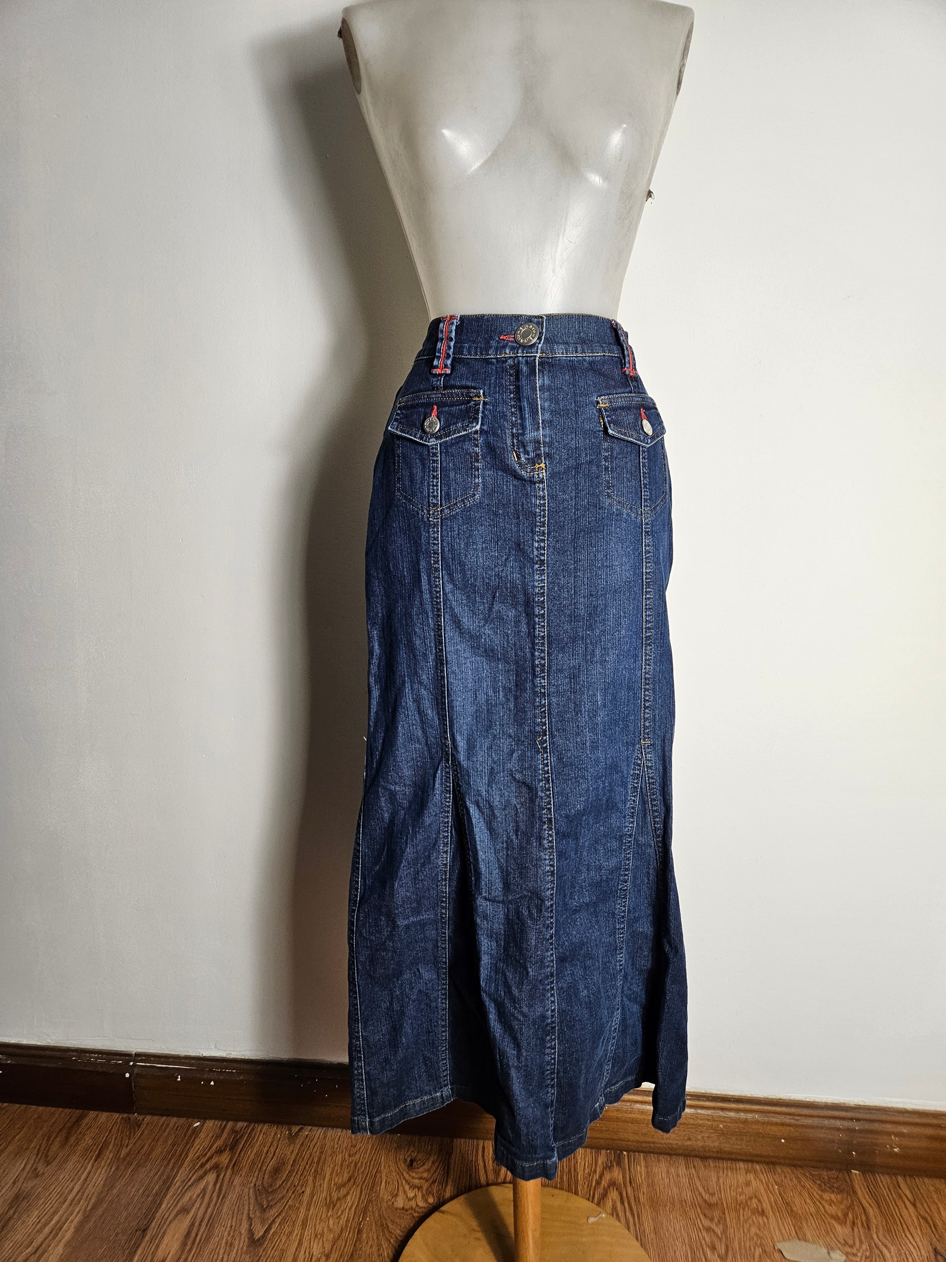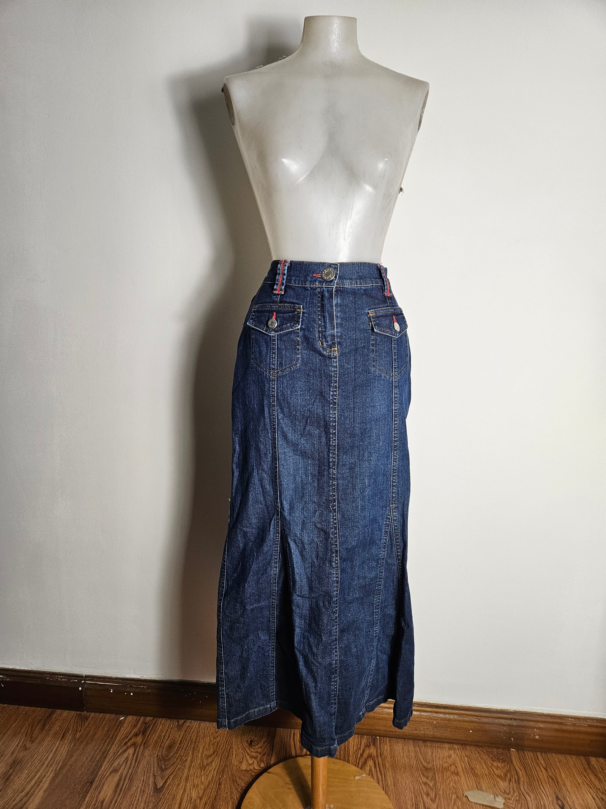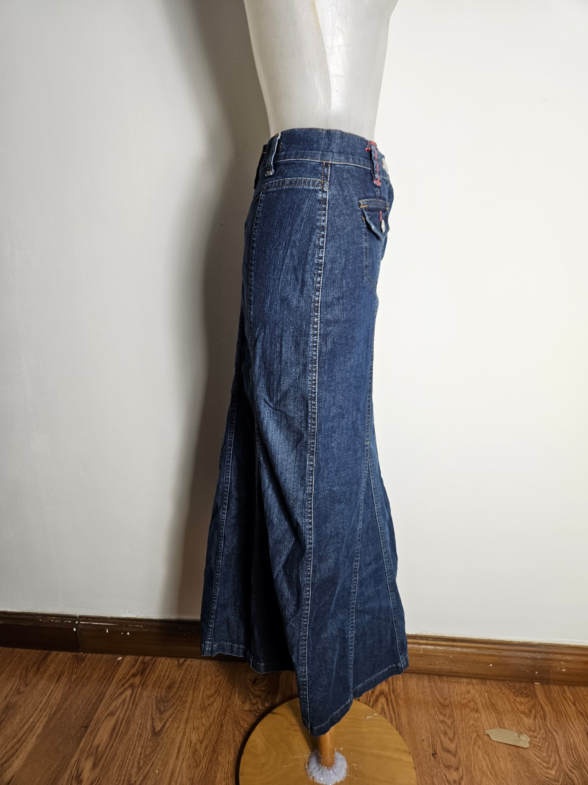 Longue jupe sirène en denim bleu.