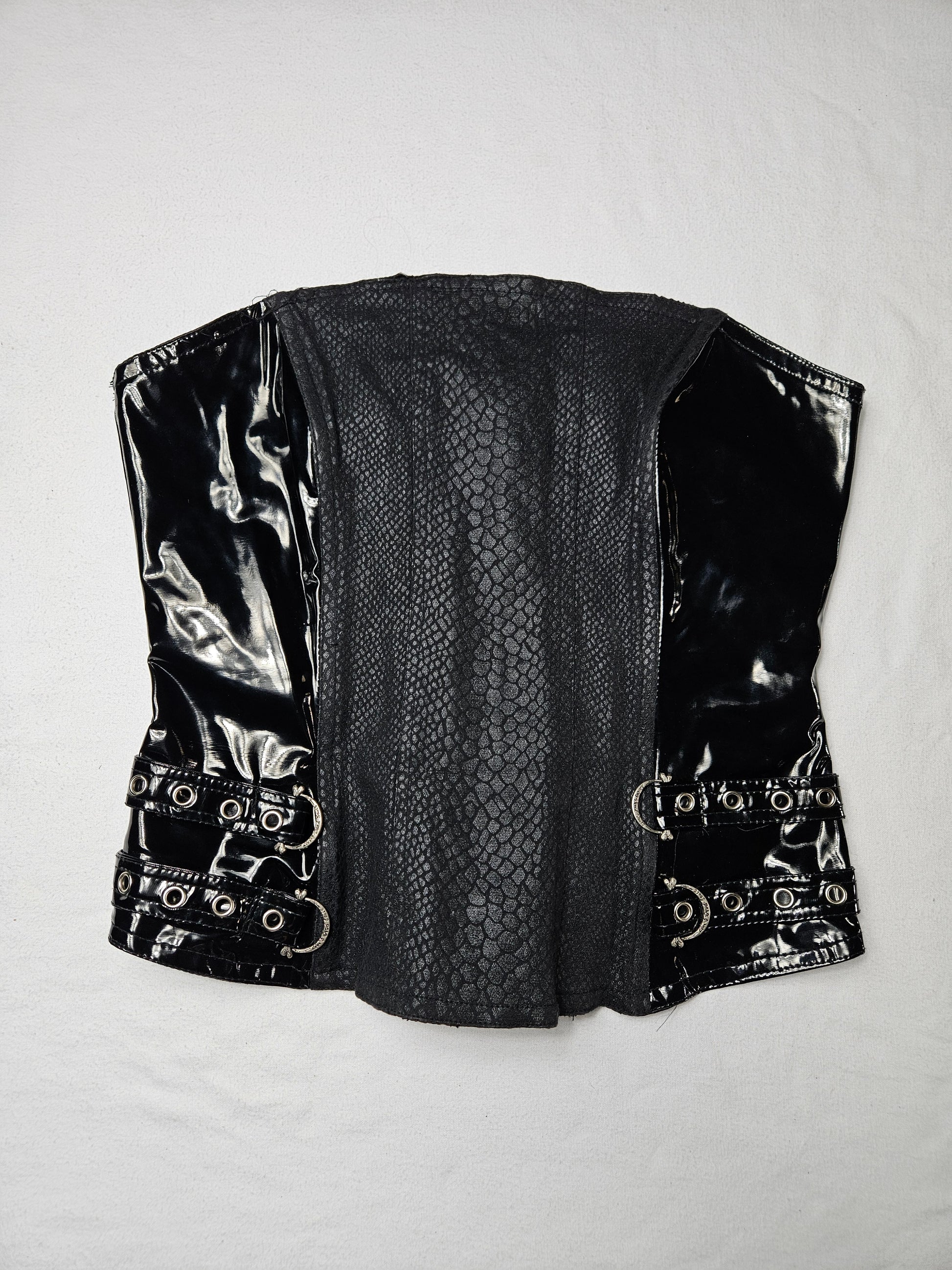 - Bustier noir effet serpent et vinyle