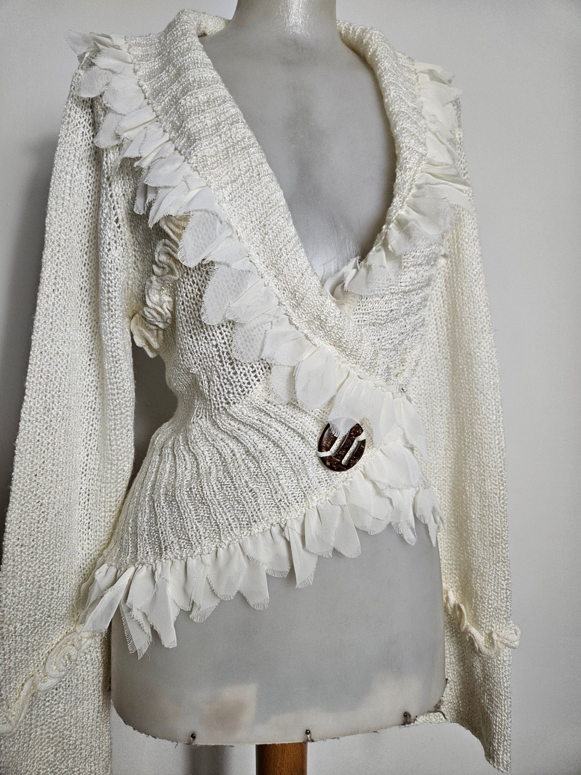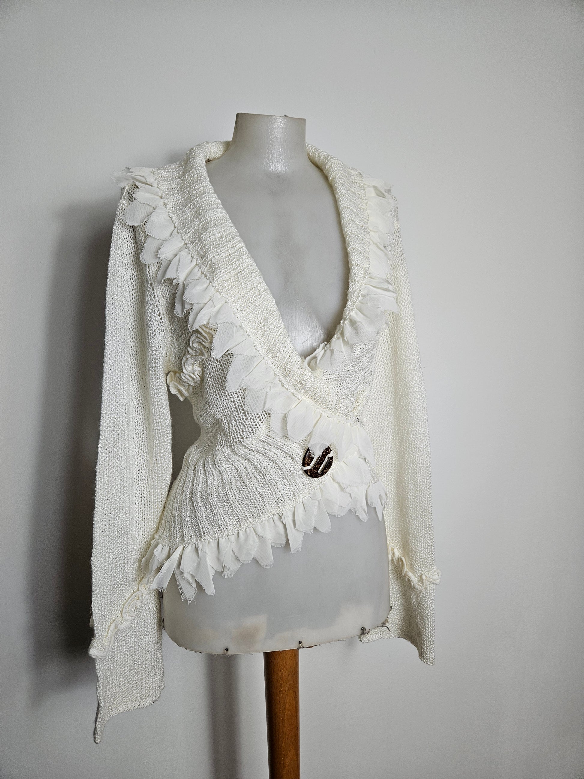 - Gilet cache-cœur crème à détails en voile et boucle