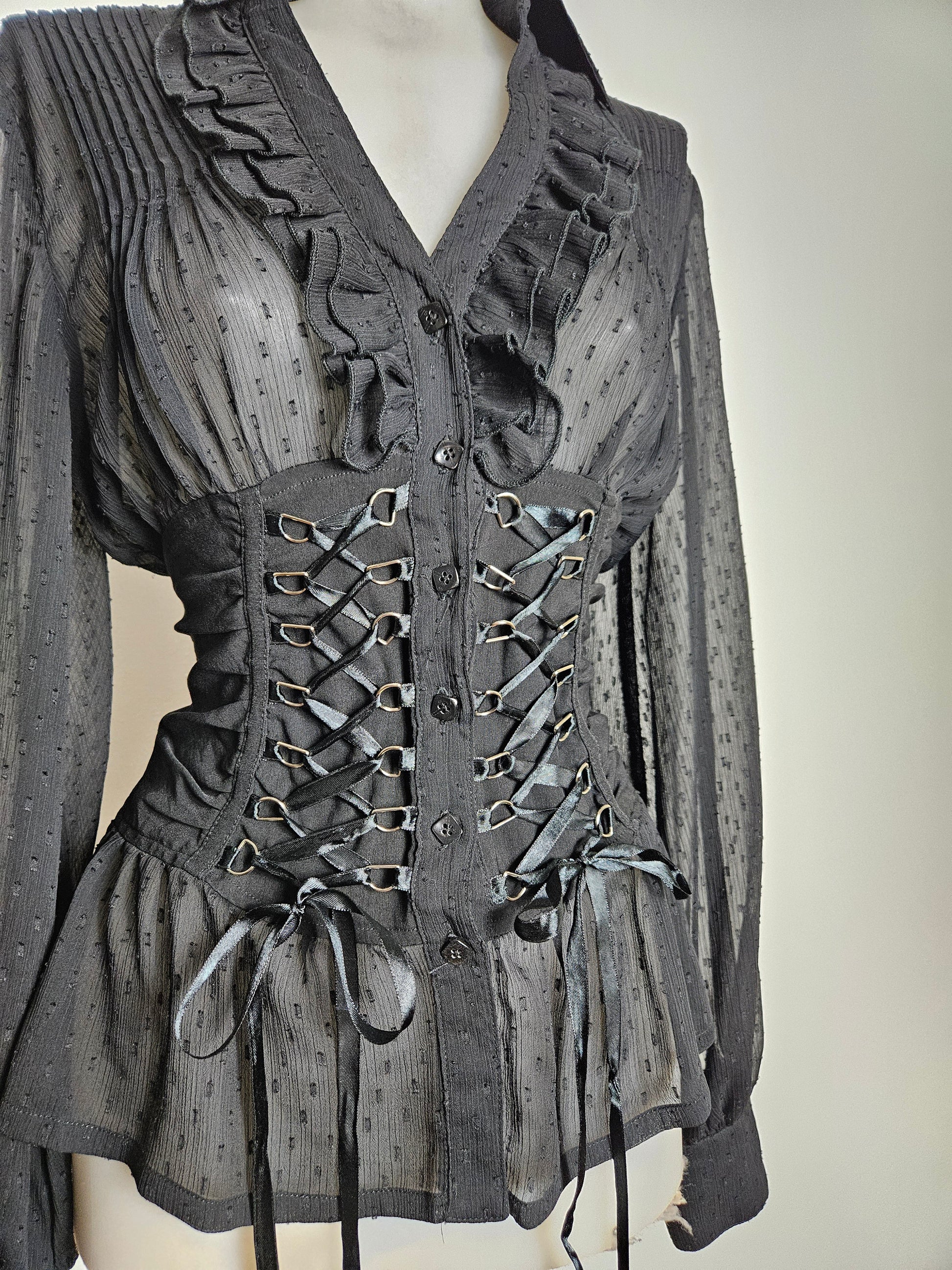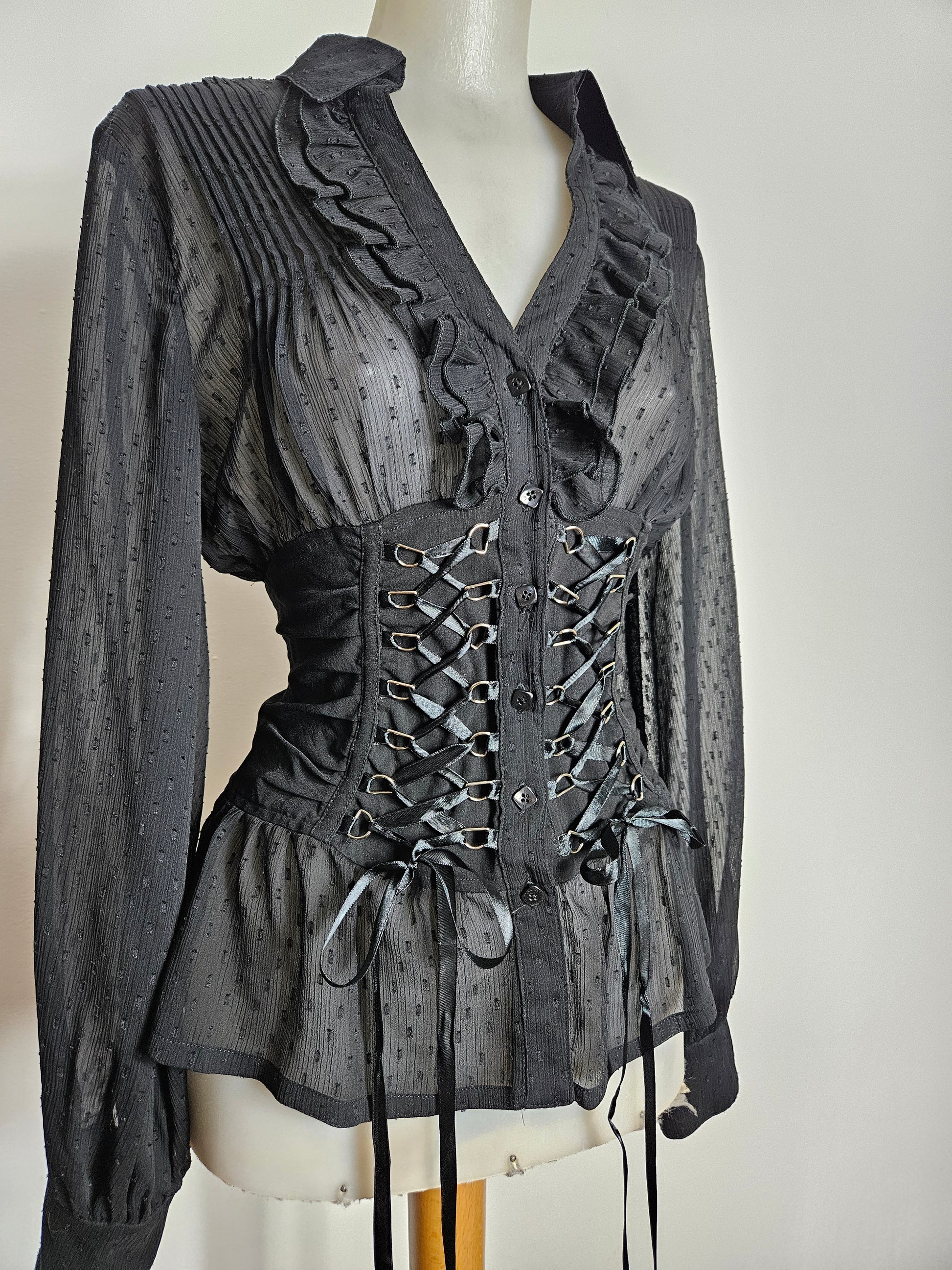 Corset intégré à lacets sur le devant avec rubans satinés.