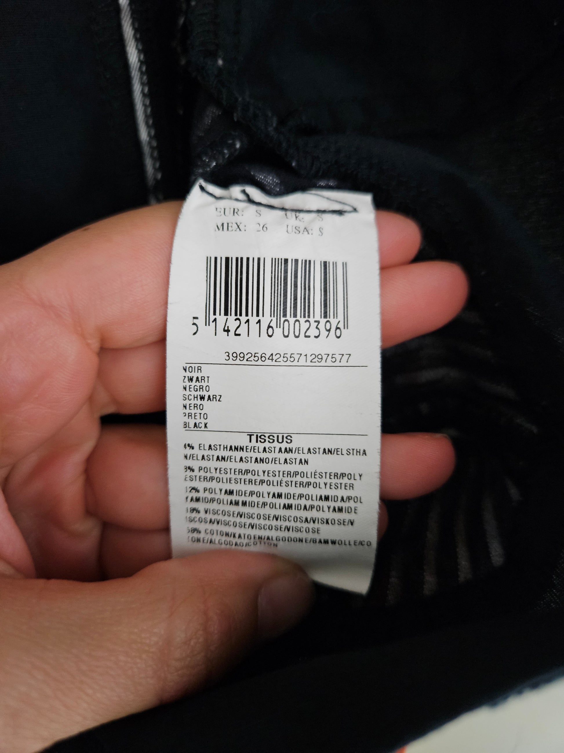 Composition : 55% viscose, 34% polyester, 7% polyamide, 4% élasthanne