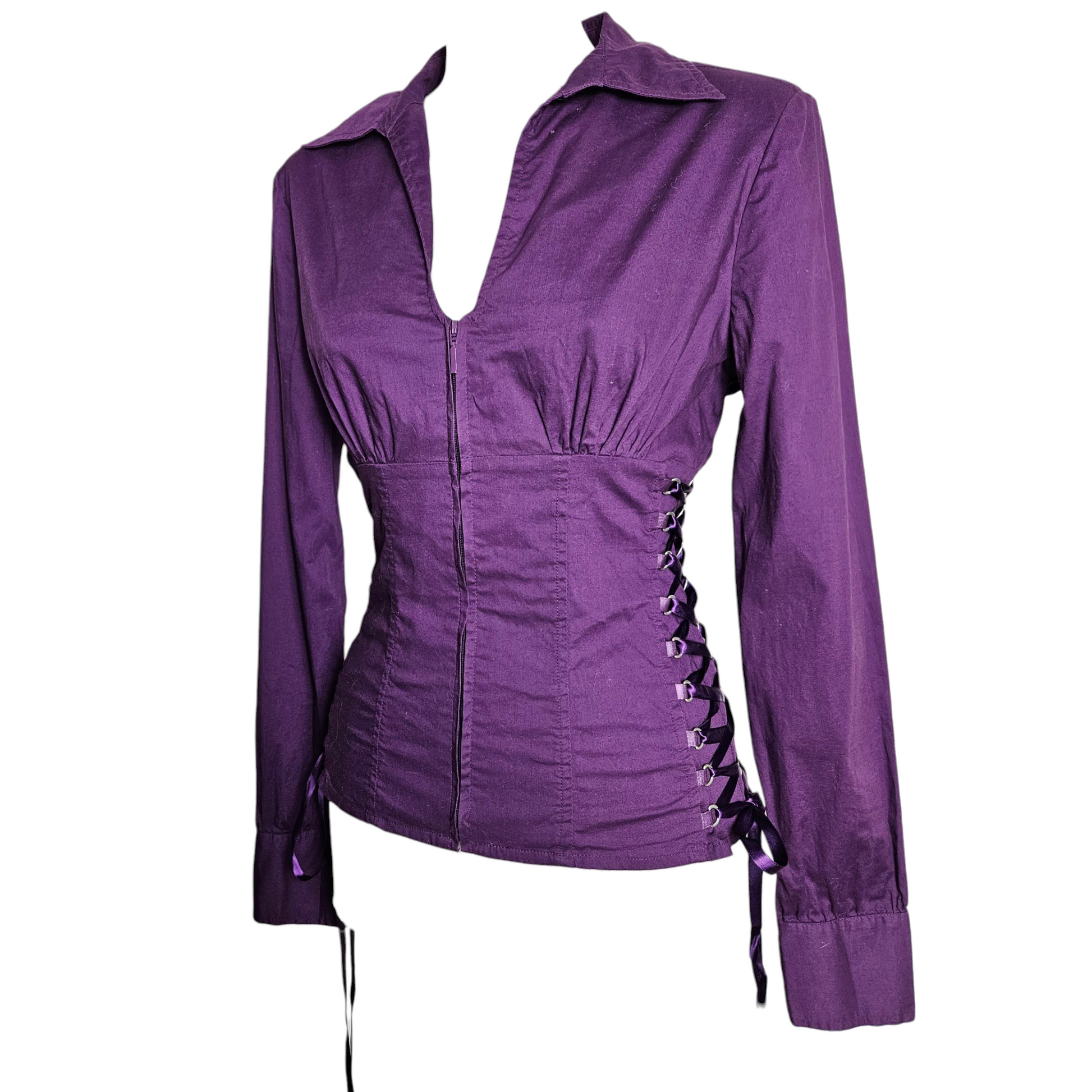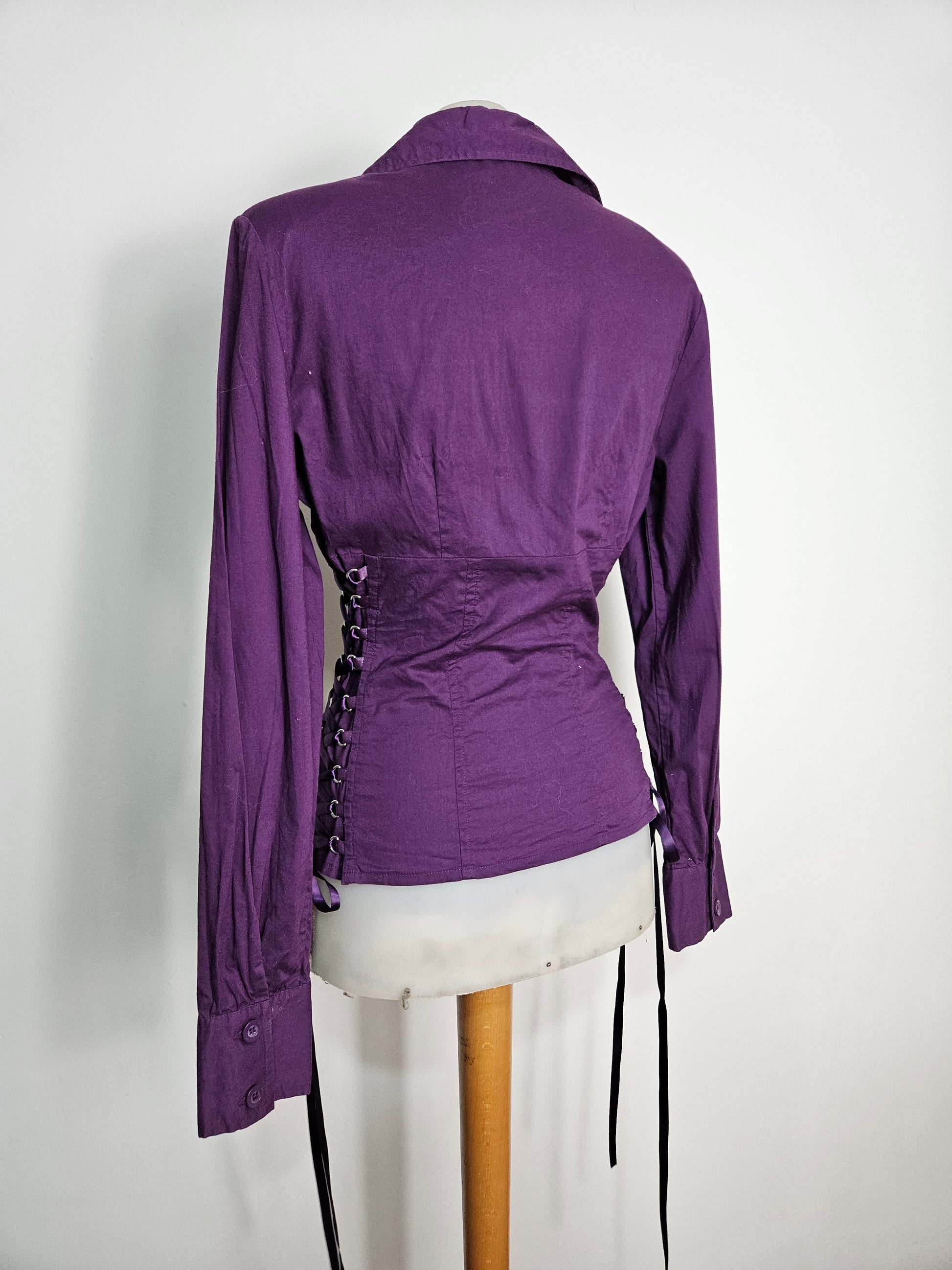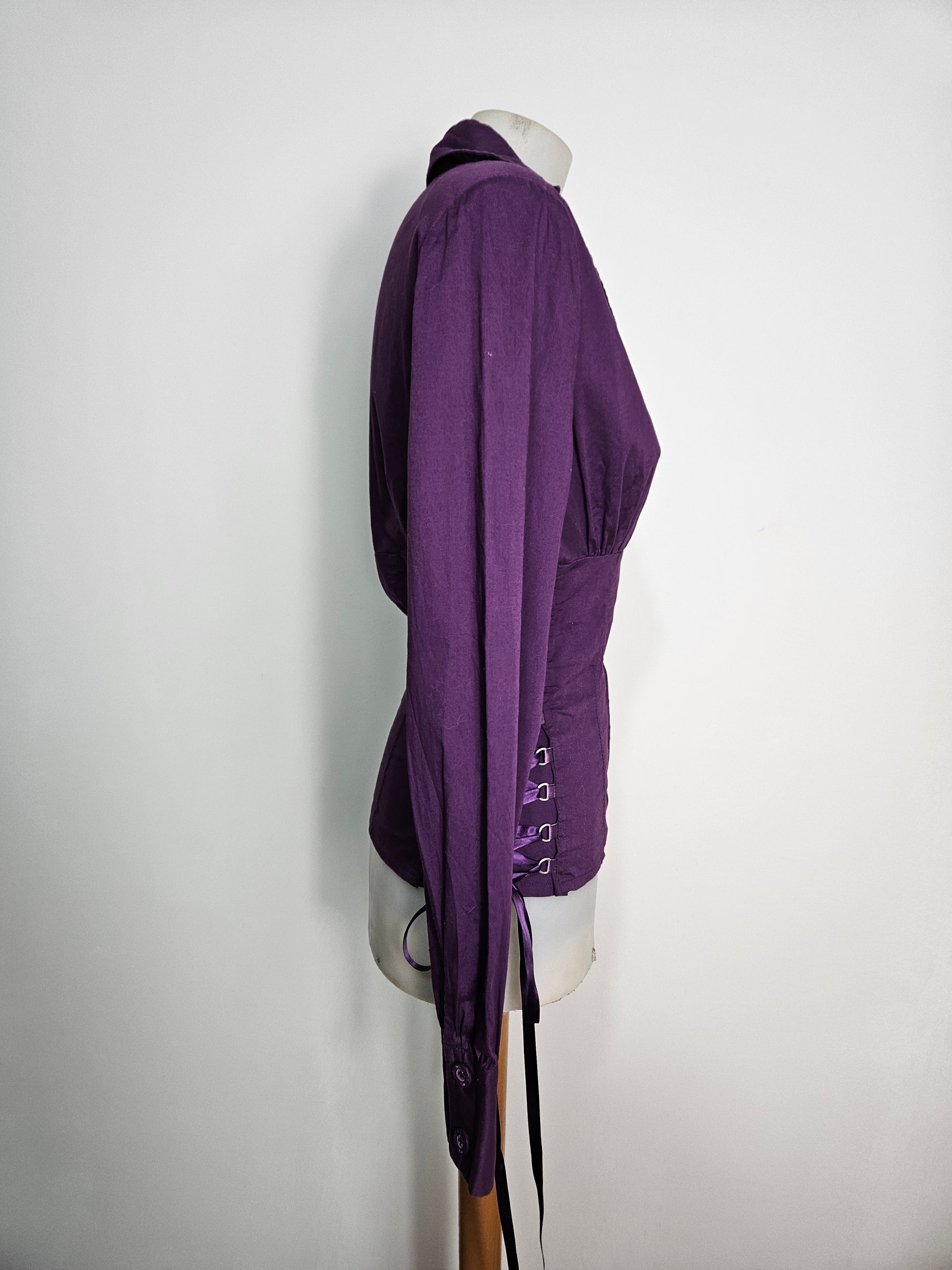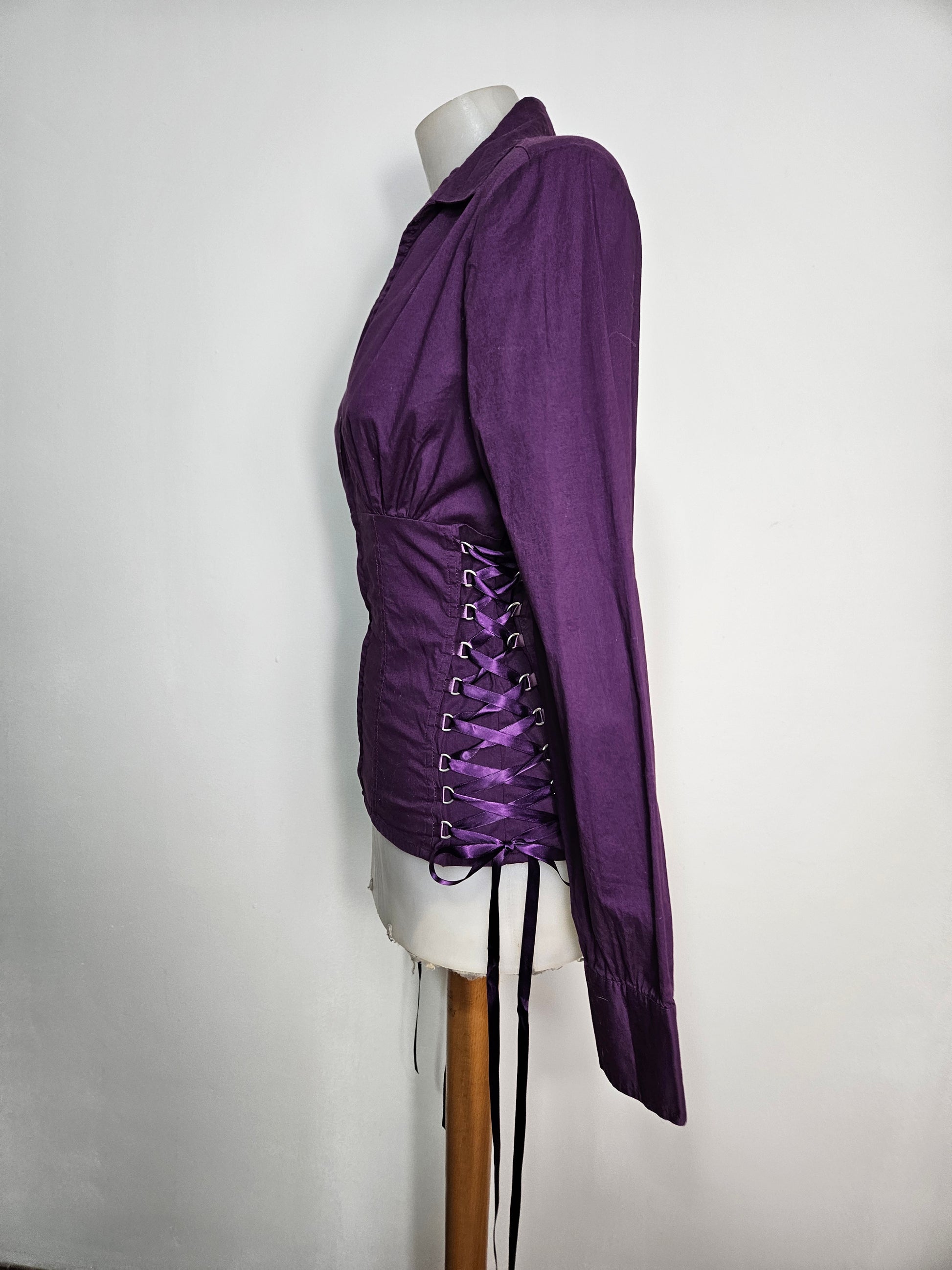 - Coutures verticales structurantes et laçages décoratifs sur les côtés.