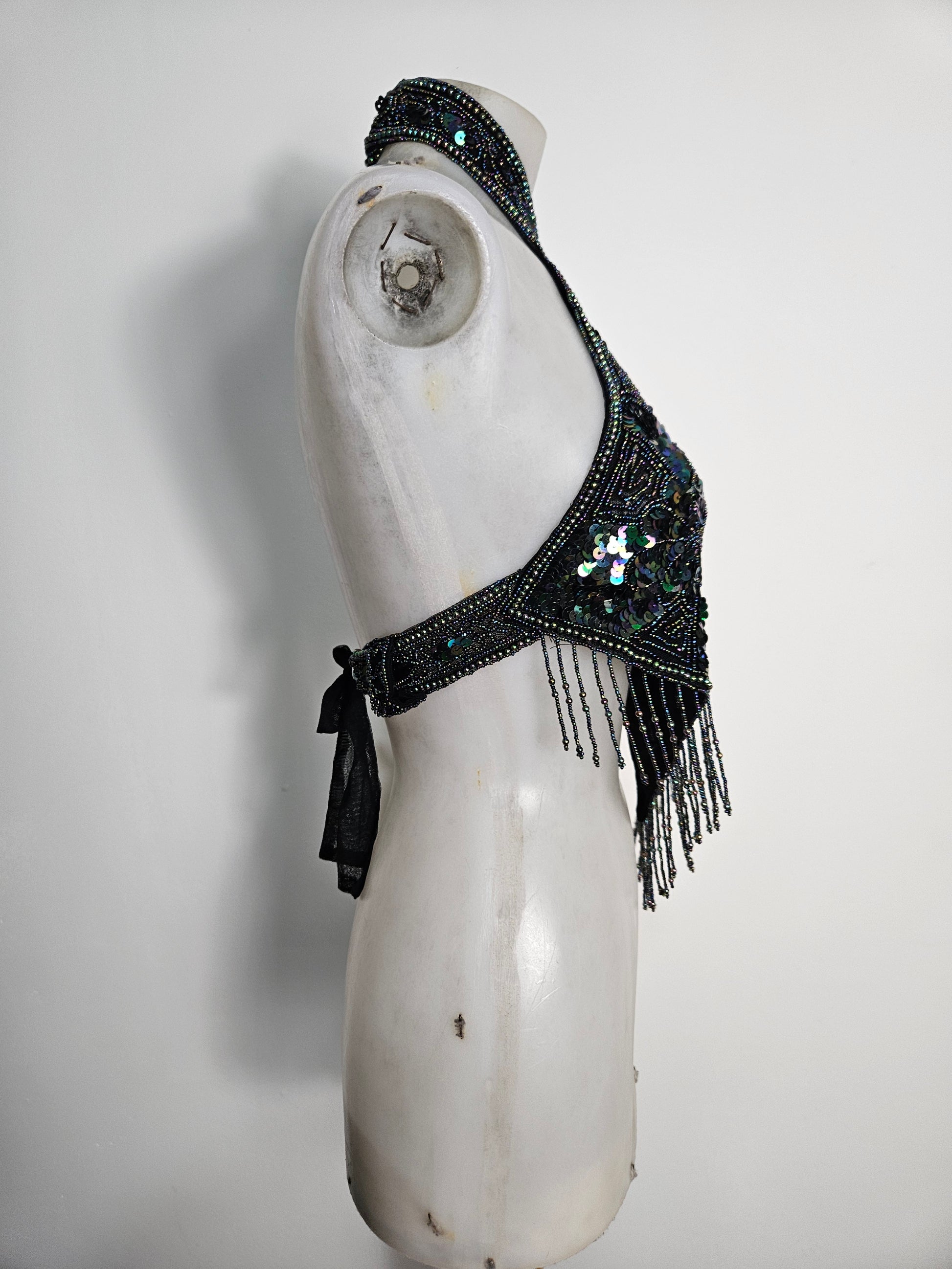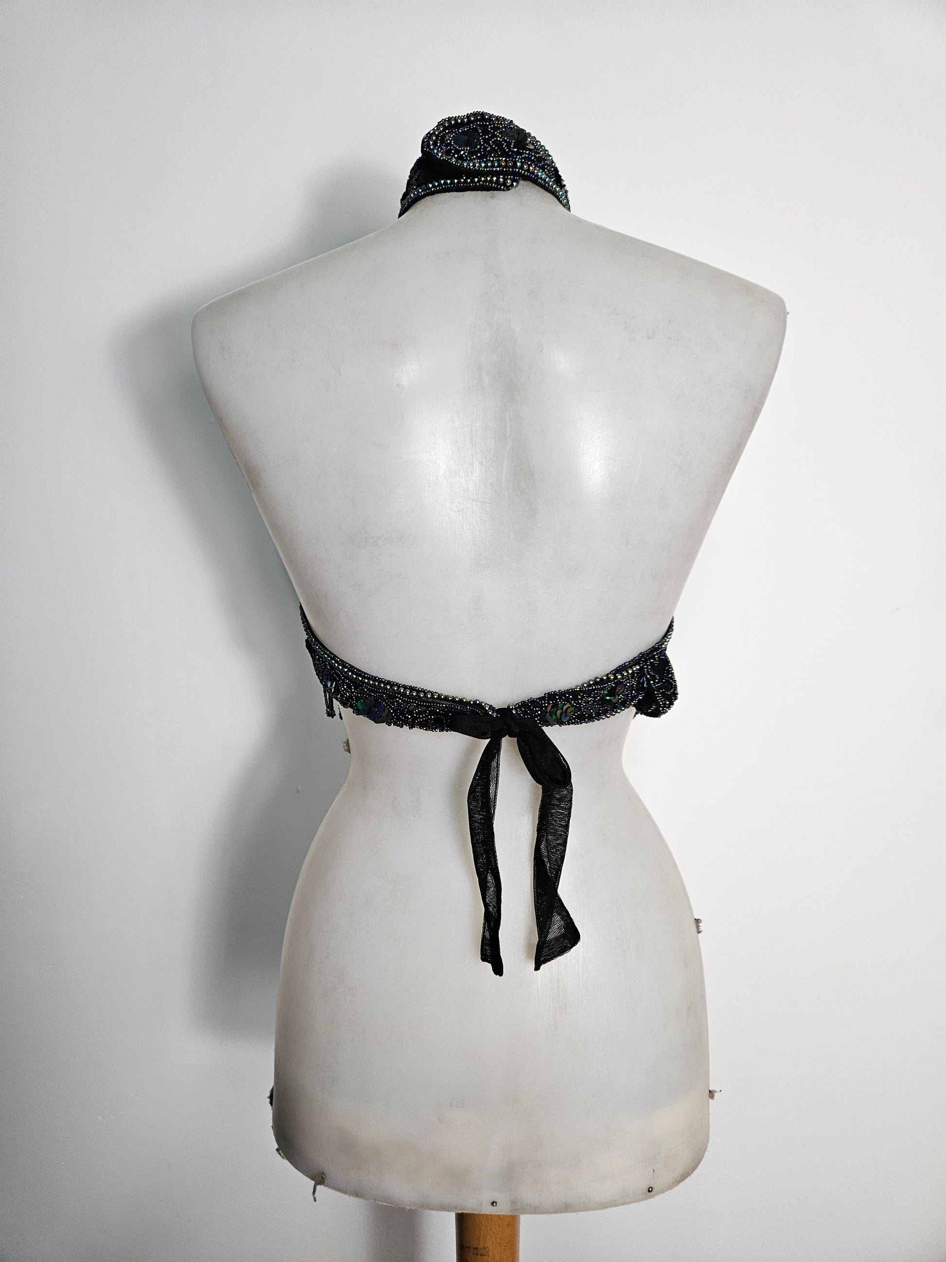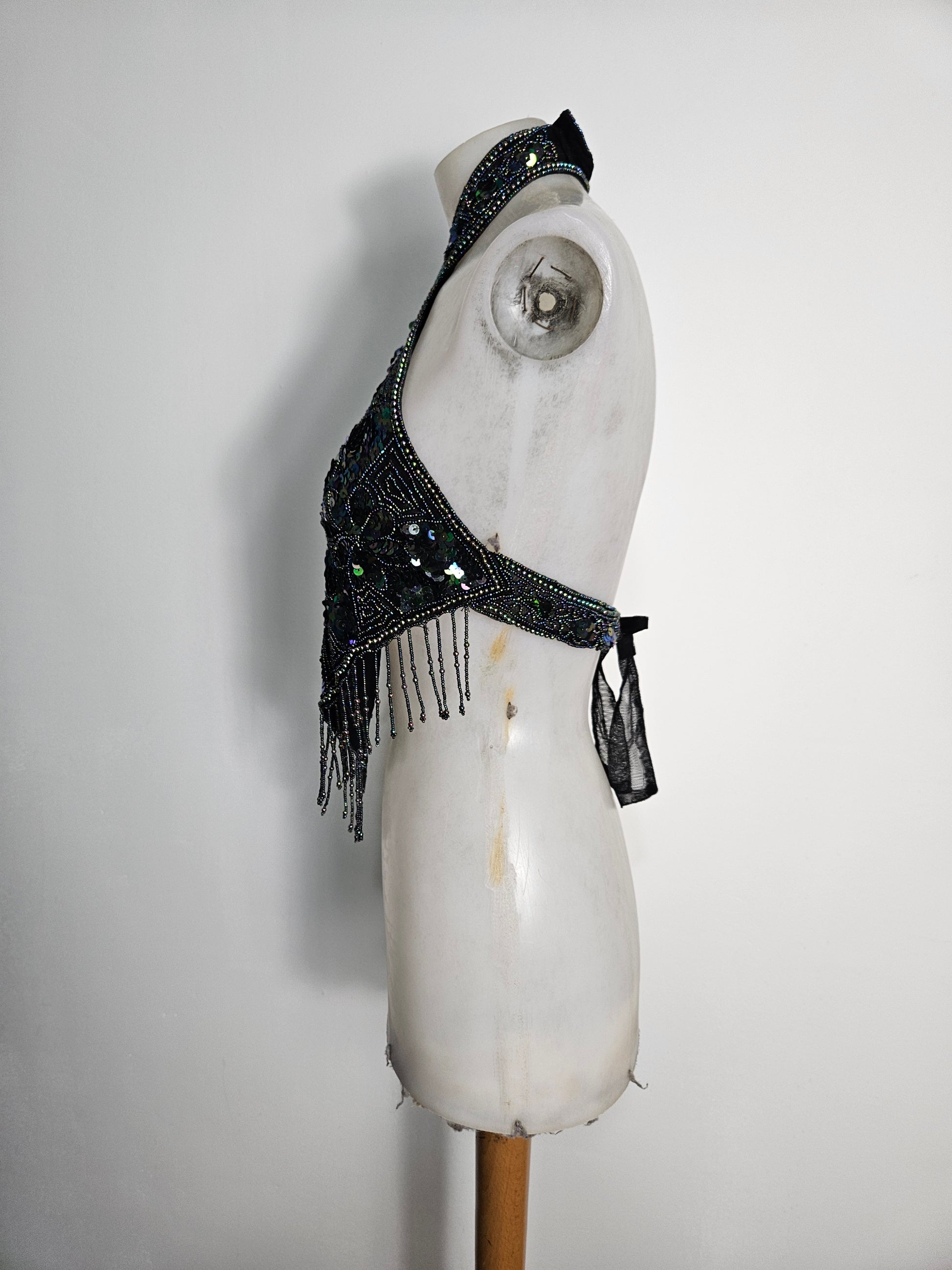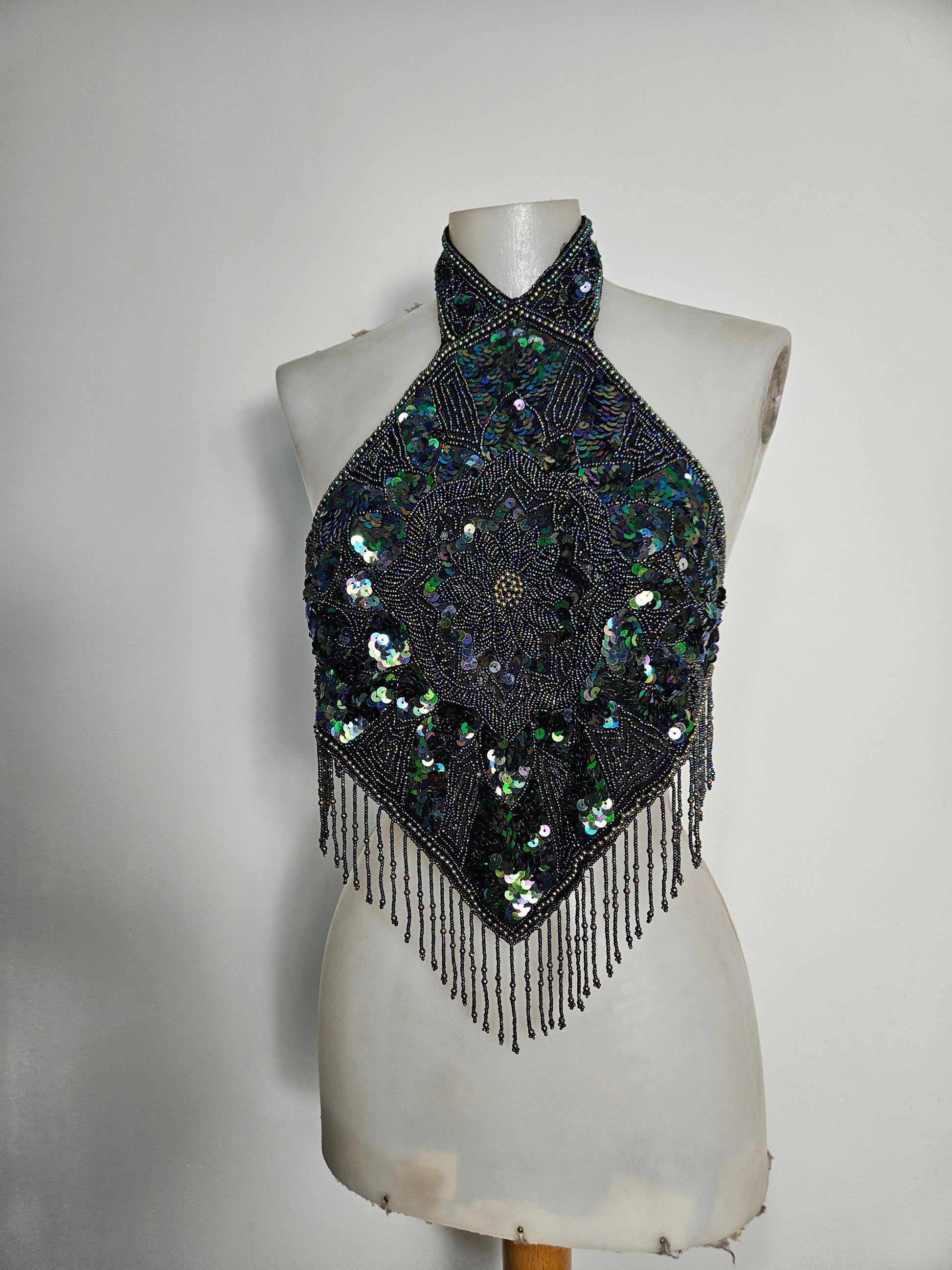 A noter : Il s'agit d'une pièce artisanale vintage. Quelques perles peuvent être tombées à certains endroits. Il s'agit de l'évolution normale de ce type de hauts. Voir dernière photo.