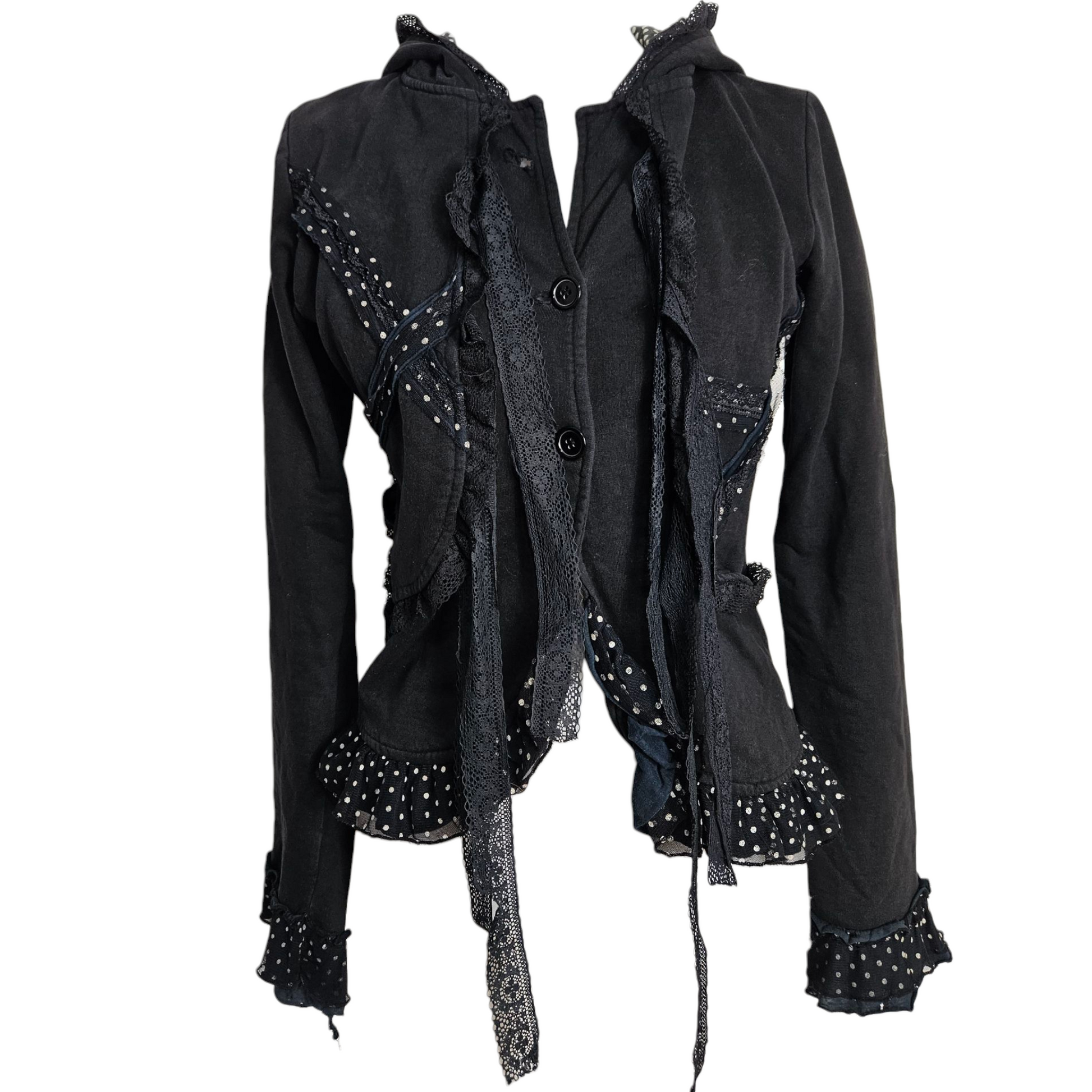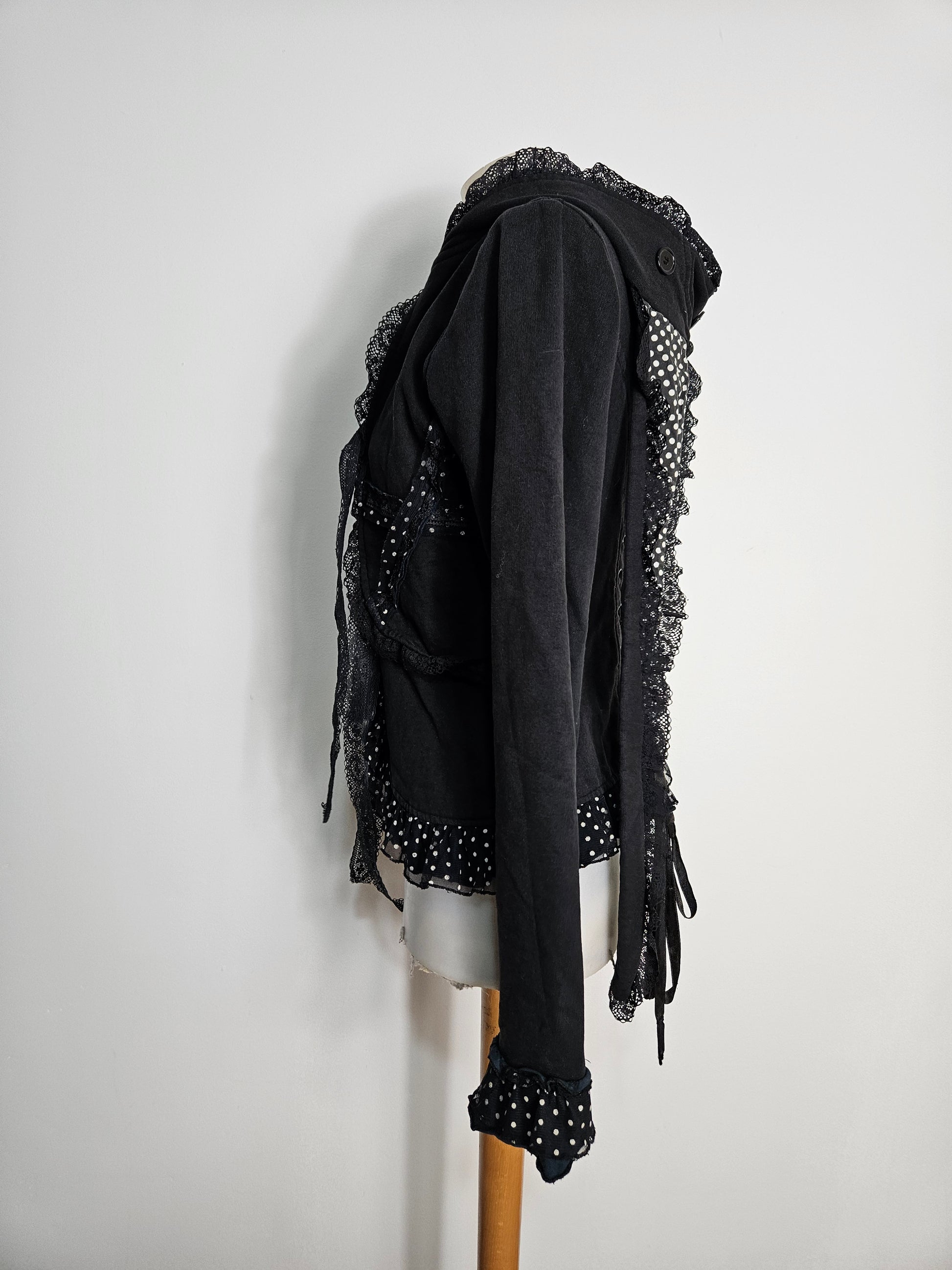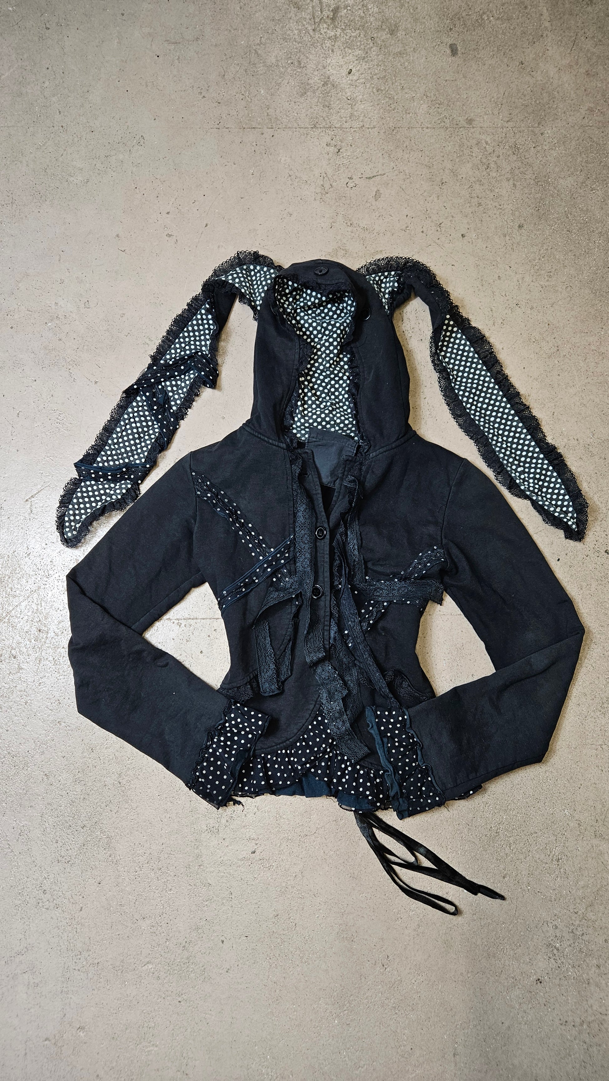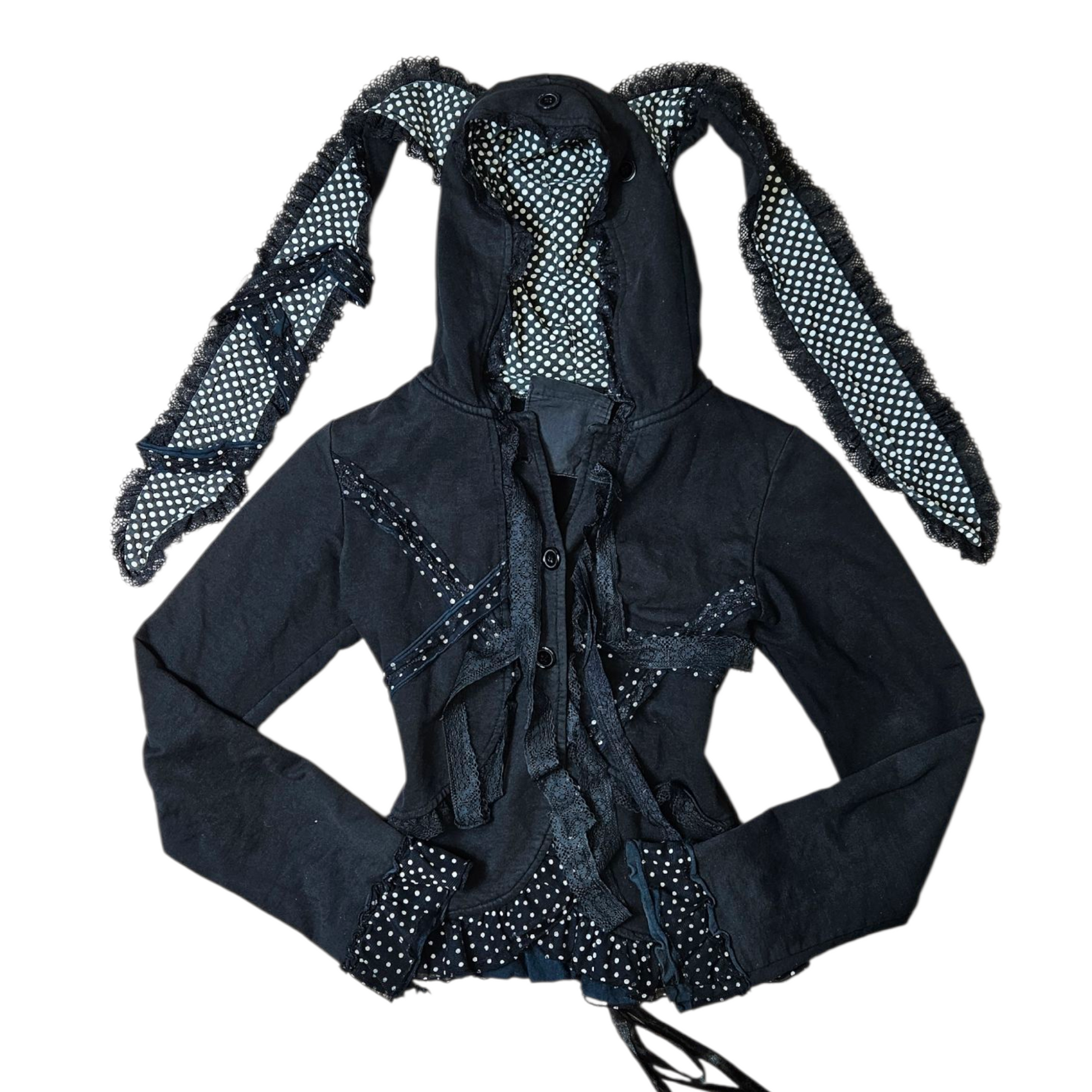 - Veste noire à capuche formant des oreilles de lapin à détails pois