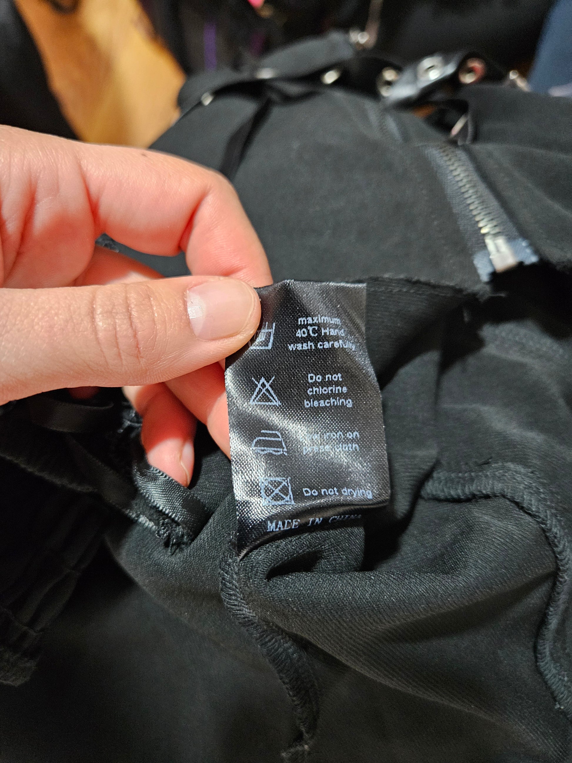 Entretien : Lavage à la main à 40 °C maximum, pas de blanchiment, ne pas sécher en machine, repassage doux.